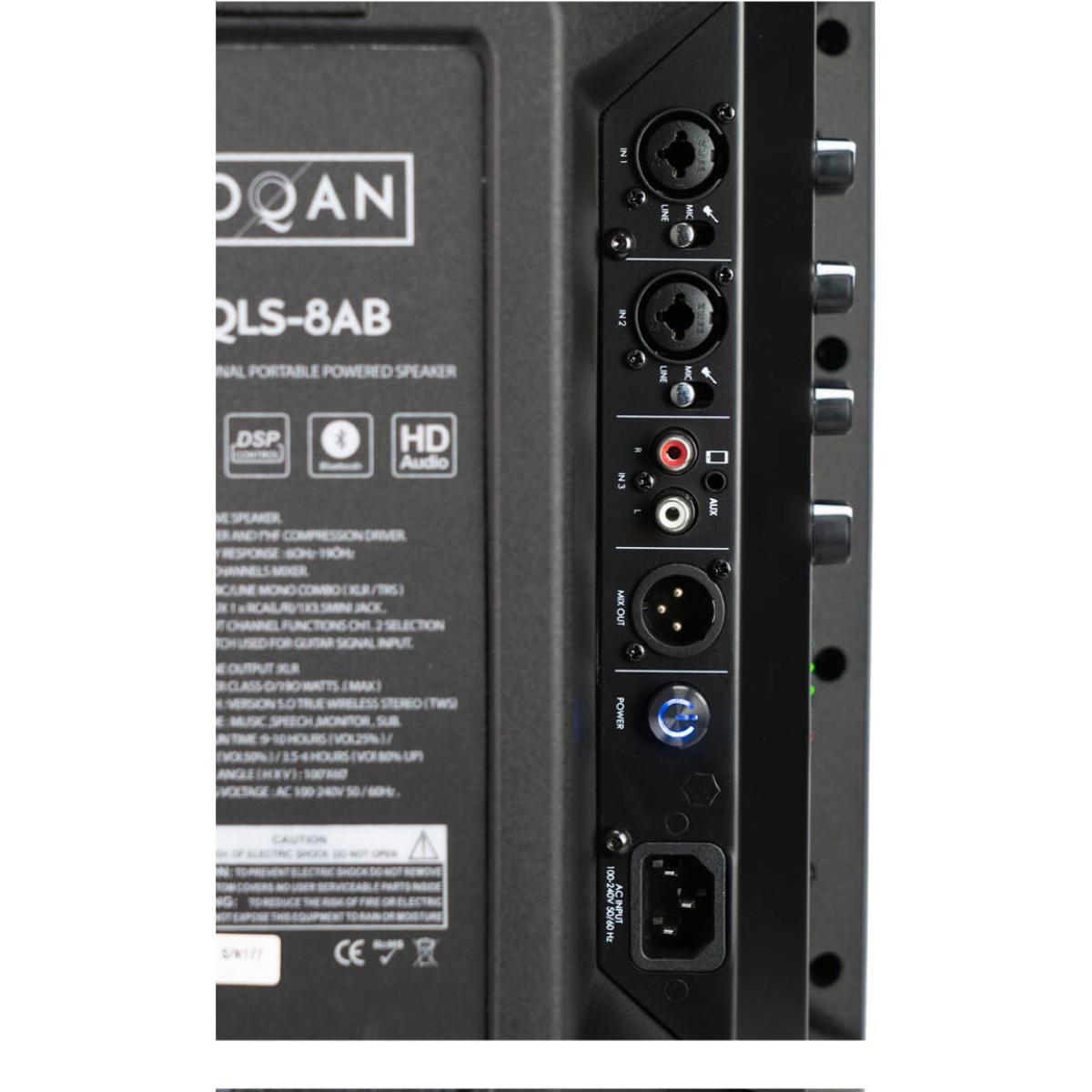 • Altifalante autoalimentado de 8'' Classe D com bateria recarregável incorporada, DSP e porta de áudio sem fios True Wireless Stereo. ;