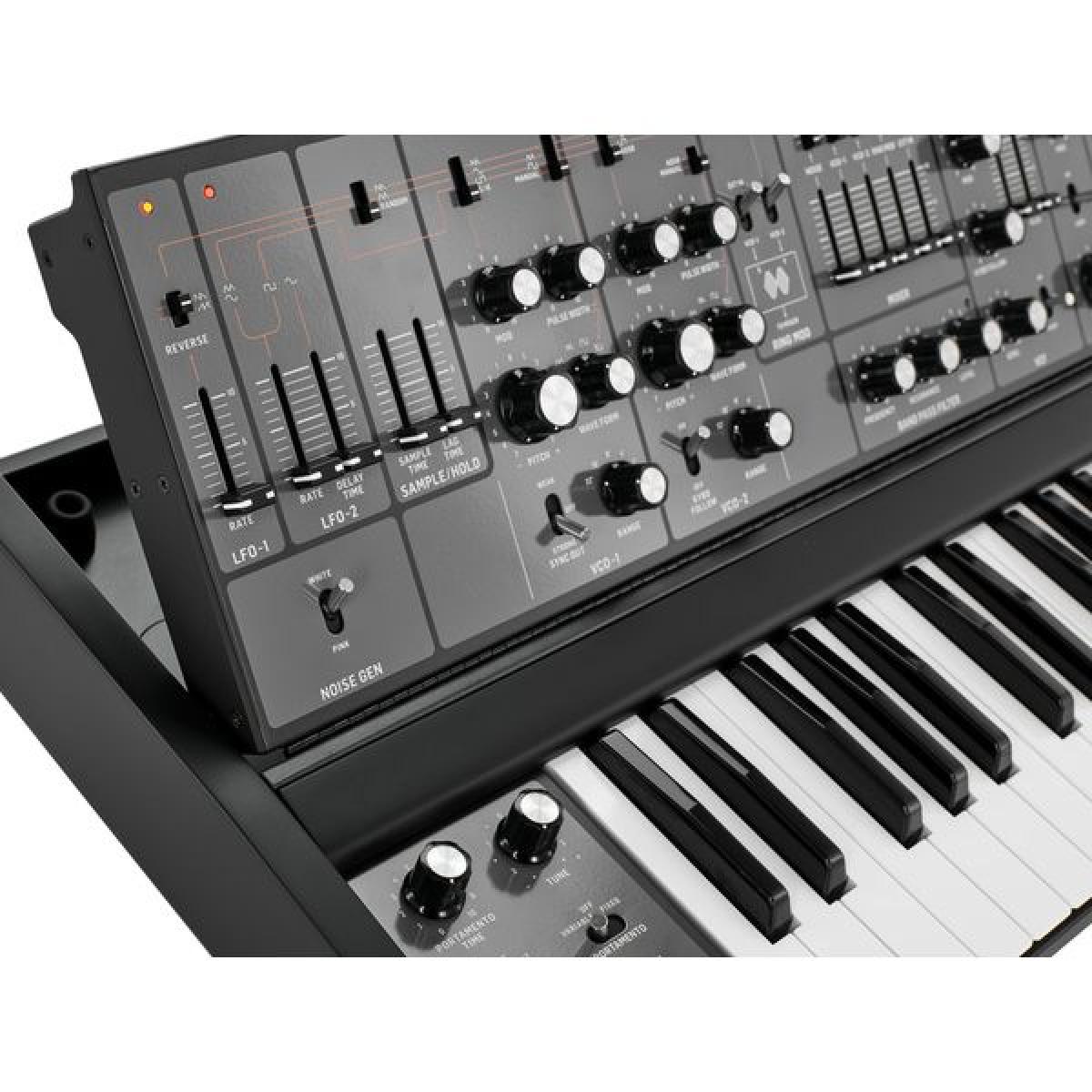 • 2 osciladores analógicos com 4 formas de onda selecionáveis (dente de serra, triângulo, quadrado e pulso com modulação de largura de pulso);