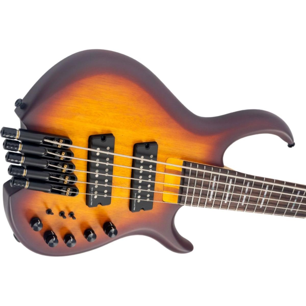 • Baixo elétrico Sire M6 5 cordas sem cabeça Tobacco Sunburst Satin;