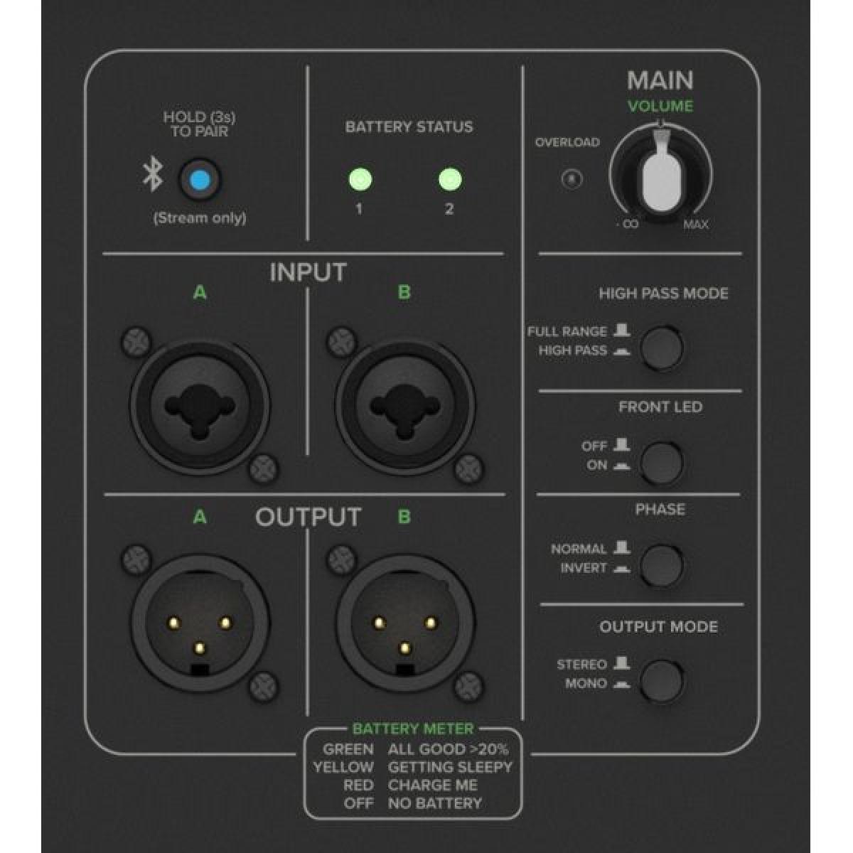 • Subwoofer ativo duplo de 8" com funcionamento a bateria;