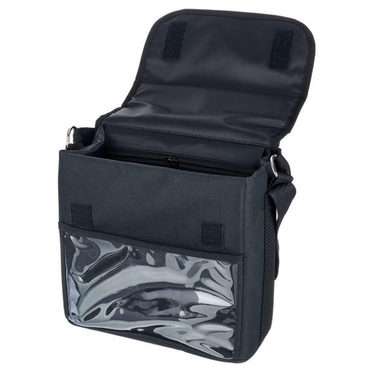 • With shoulder strap and compartments for power and audio cables