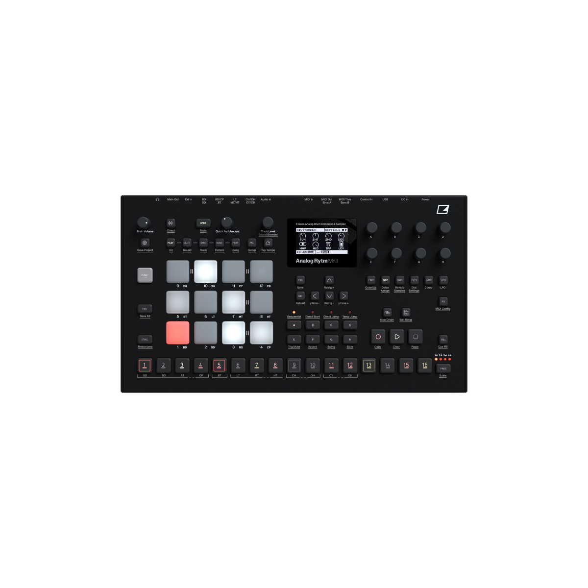 O Elektron Analog Rytm MKII inclui todas as características necessárias para utilização tanto em situações de estúdio como em live. Equipado com um sequenciador amigo do ambiente, o Analog Four pode ser utilizado para sequenciar linhas de síntese de alta qualidade e resposta num instante. As linhas do sequenciador podem ser instantaneamente alteradas para um movimento interessante e dinâmico dentro da sua música, dando origem a capacidades excecionais de improvisação em qualquer ambiente. Com toda uma série de entradas e saídas, o Analog Rytm MKII está em casa, tanto em estúdio como em palco.