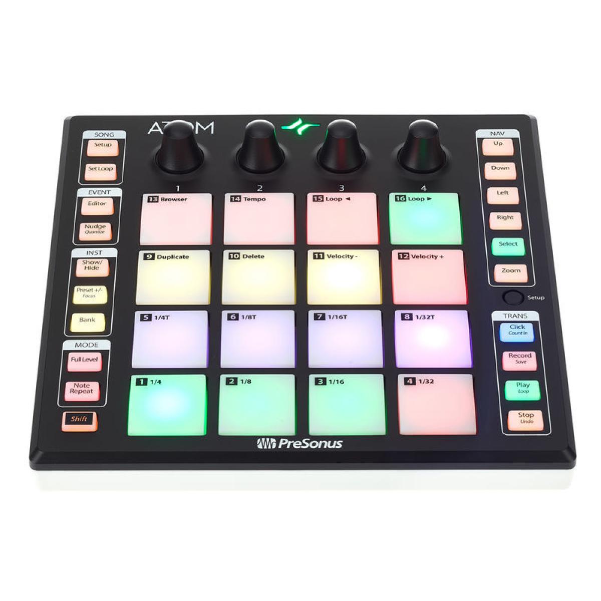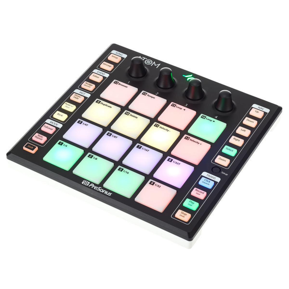 Um dos pad mais acessíveis do mercado. O Pad USB PreSonus ATOM é um controlador compacto e portátil com 16 pads LED RGB sensíveis à velocidade.