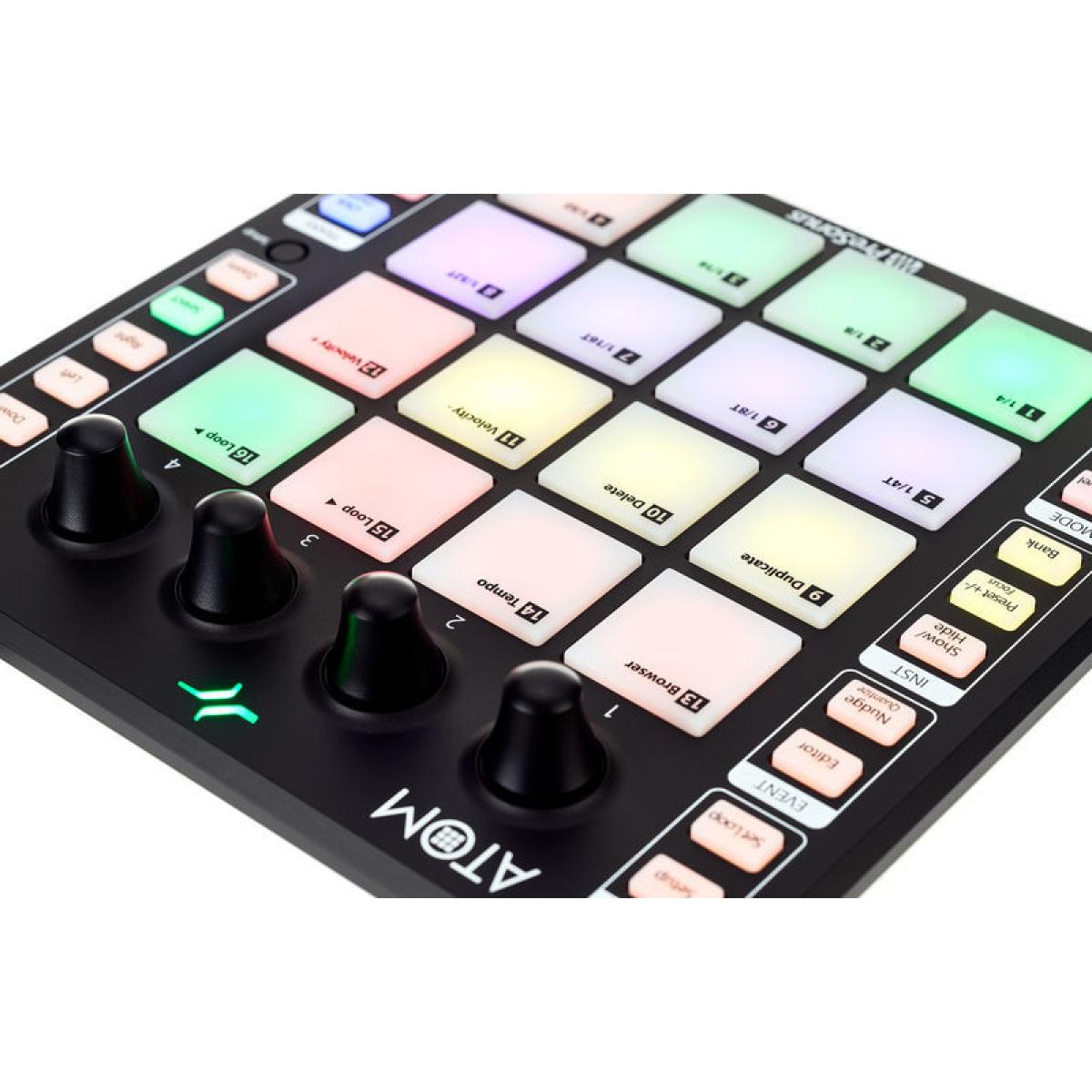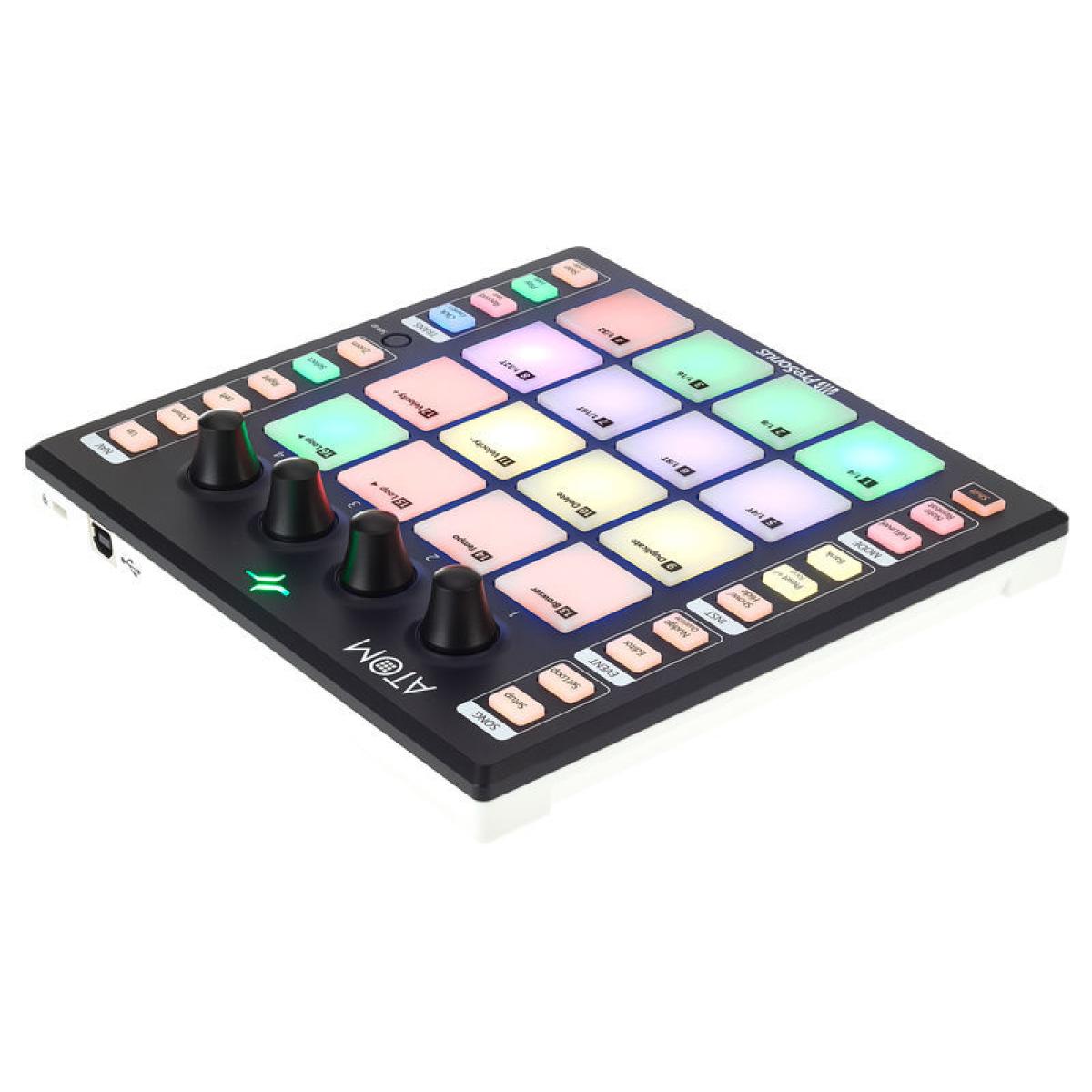 Além dos pads, o ATOM inclui quatro codificadores giratórios programáveis e 20 botões atribuíveis. Isso dá-lhe um controle adicional que pode ser muito útil para sets live