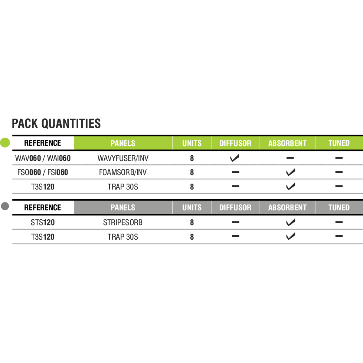 Quando combinados nas proporções certas, estes modelos criam, na tua sala, um equilíbrio harmonioso em todo o espectro de frequências. As simuIações mostram que estas soluções acústicas oferecem um controlo quase perfeito sobre o tempo de reverberação e a distribuição musical, resultando num ambiente acústico ideal para produzir, gravar ou tocar música.