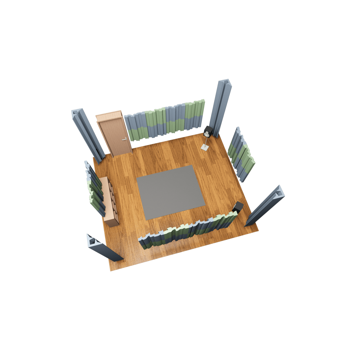 Quando combinados nas proporções certas, estes modelos criam, na tua sala, um equilíbrio harmonioso em todo o espectro de frequências. As simuIações mostram que estas soluções acústicas oferecem um controlo quase perfeito sobre o tempo de reverberação e a distribuição musical, resultando num ambiente acústico ideal para produzir, gravar ou tocar música.