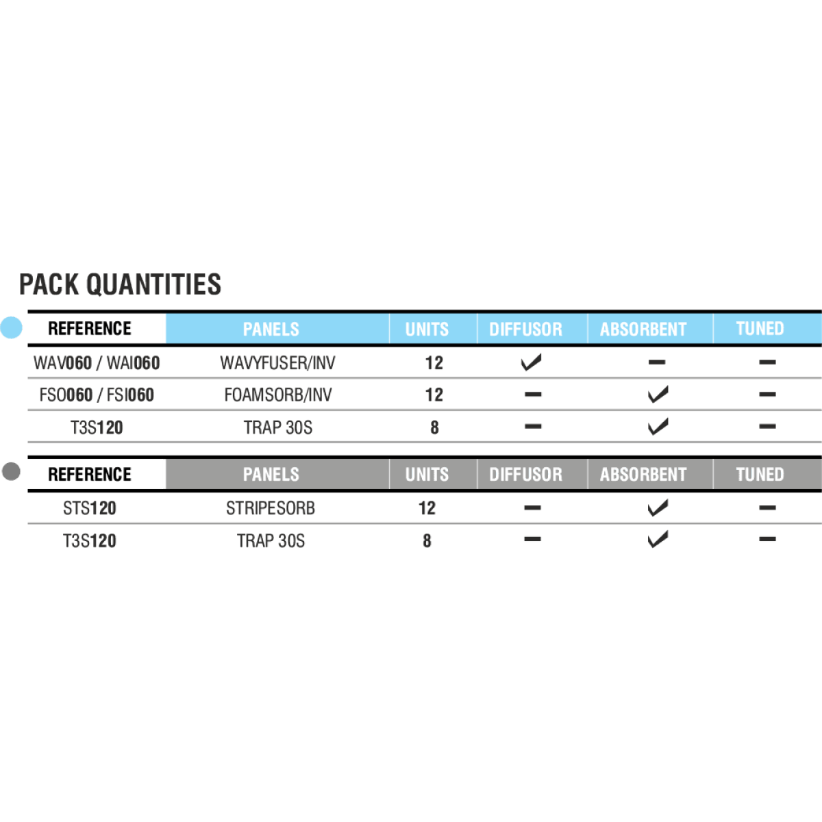 Quando combinados nas proporções certas, estes modelos criam, na tua sala, um equilíbrio harmonioso em todo o espectro de frequências. As simuIações mostram que estas soluções acústicas oferecem um controlo quase perfeito sobre o tempo de reverberação e a distribuição musical, resultando num ambiente acústico ideal para produzir, gravar ou tocar música.