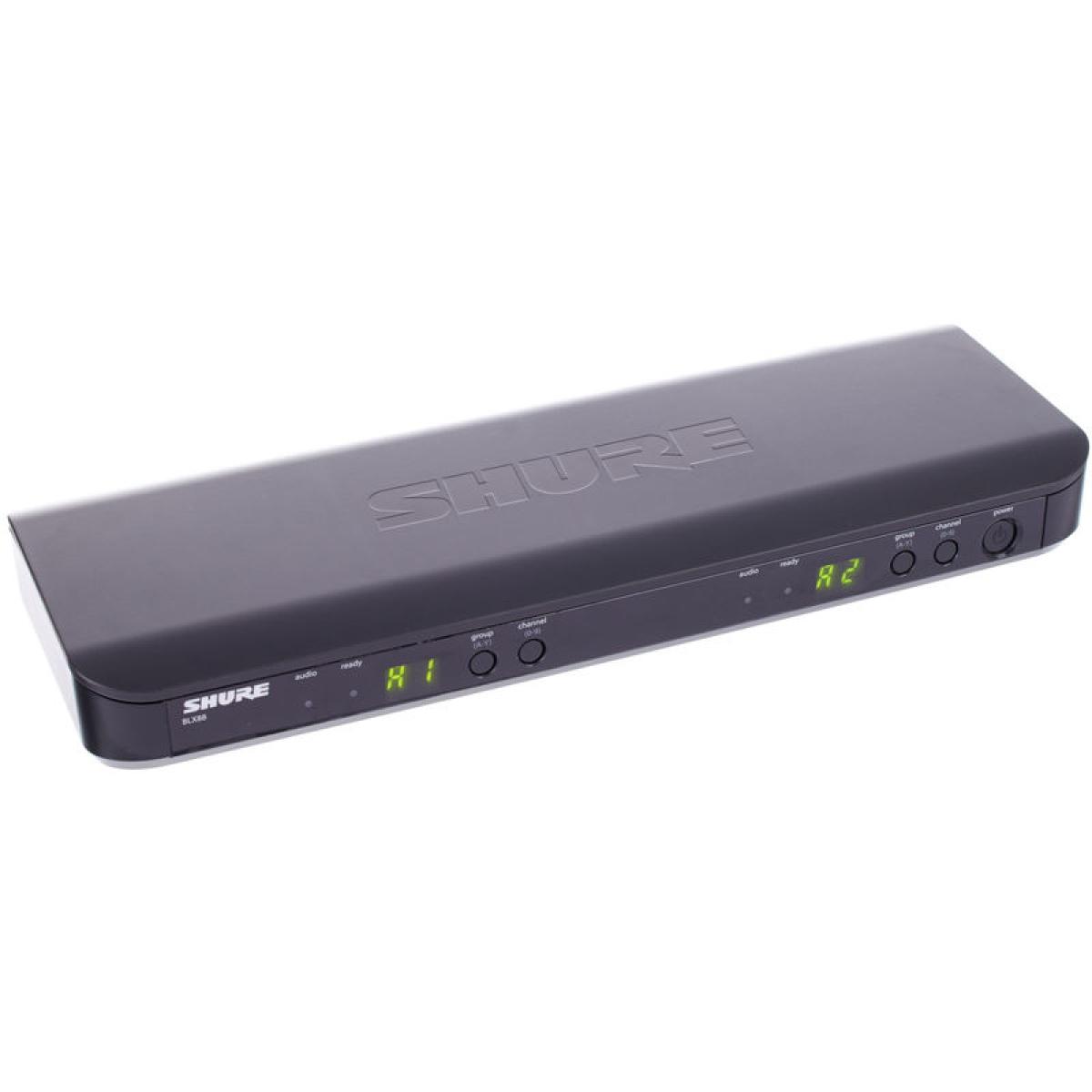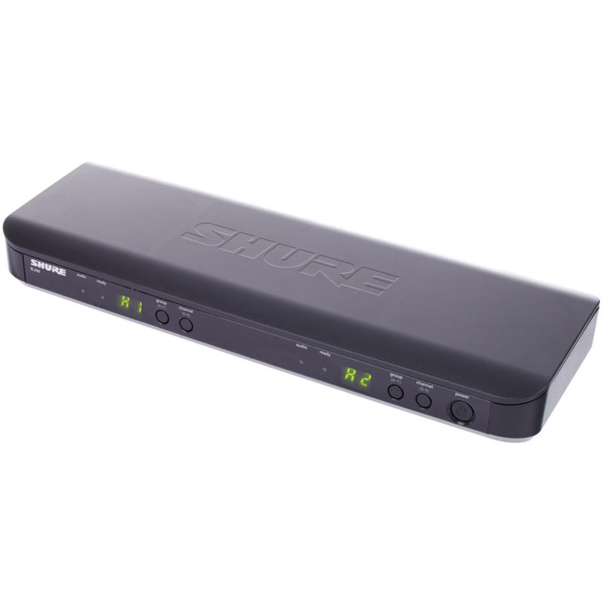 O sistema BLX288 / PG58 apresenta dual-channel receptor BLX88 da Shure e um par de transmissores BLX2, cada um equipado com uma cápsula de microfone Shure PG58.