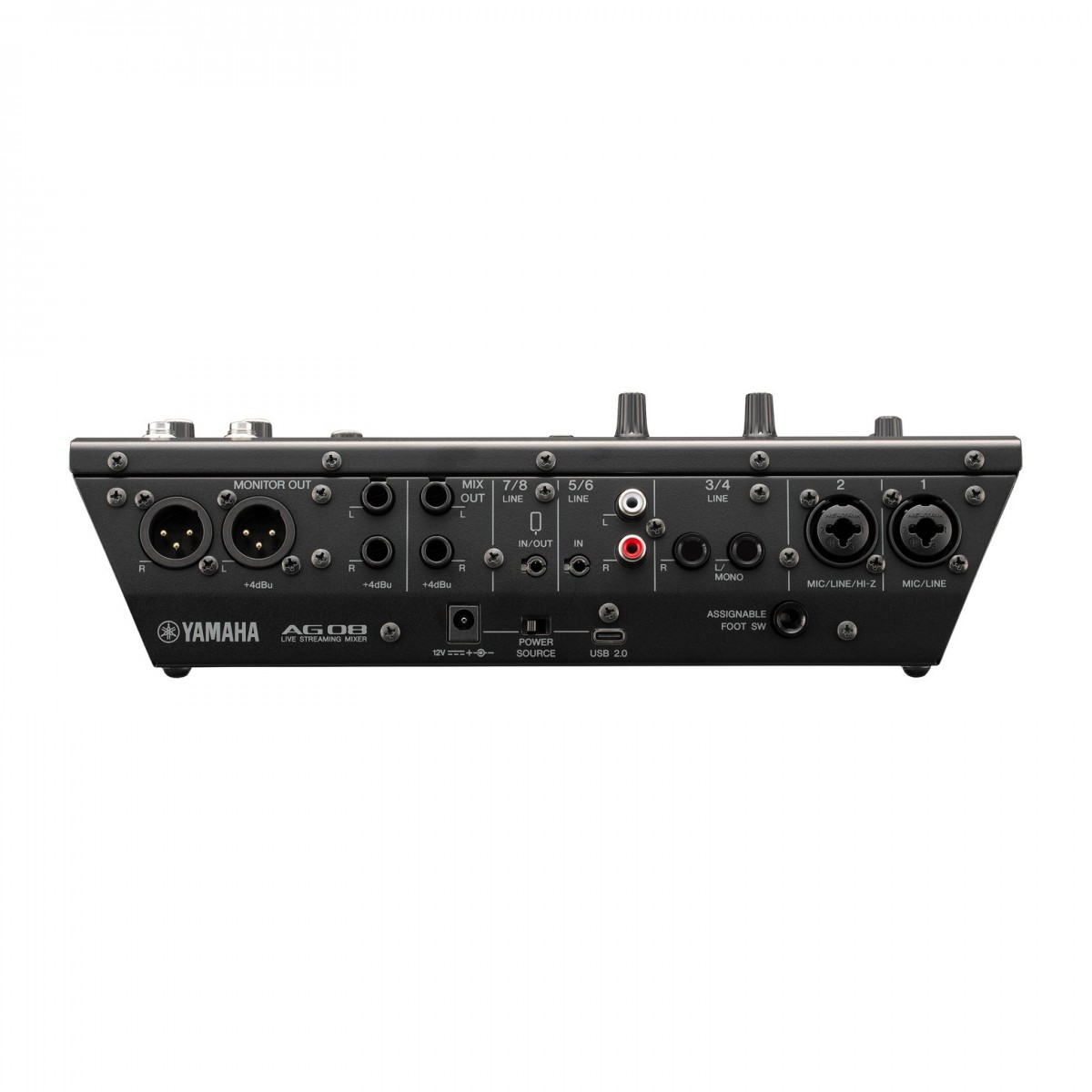 O Yamaha AG08 apresenta dois canais de entrada de microfone e seis canais de linha estéreo atribuíveis para uma incrível flexibilidade de encaminhamento de sinal. Pode configurar dois microfones condensadores, uma guitarra, um teclado, um kit de bateria electrónica, um smartphone ou tablet, media players externos, e muito mais. No entanto, a conectividade não pára por aí. Graças a uma interface de áudio USB integrada e funcionalidade de loopback, pode atribuir áudio de computador, como áudio de jogos de vídeo, reprodução de vídeo, ou chamadas de voz para misturá-los com o resto das suas fontes de áudio.