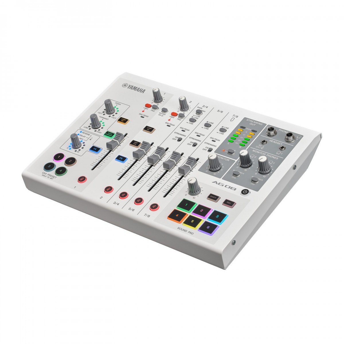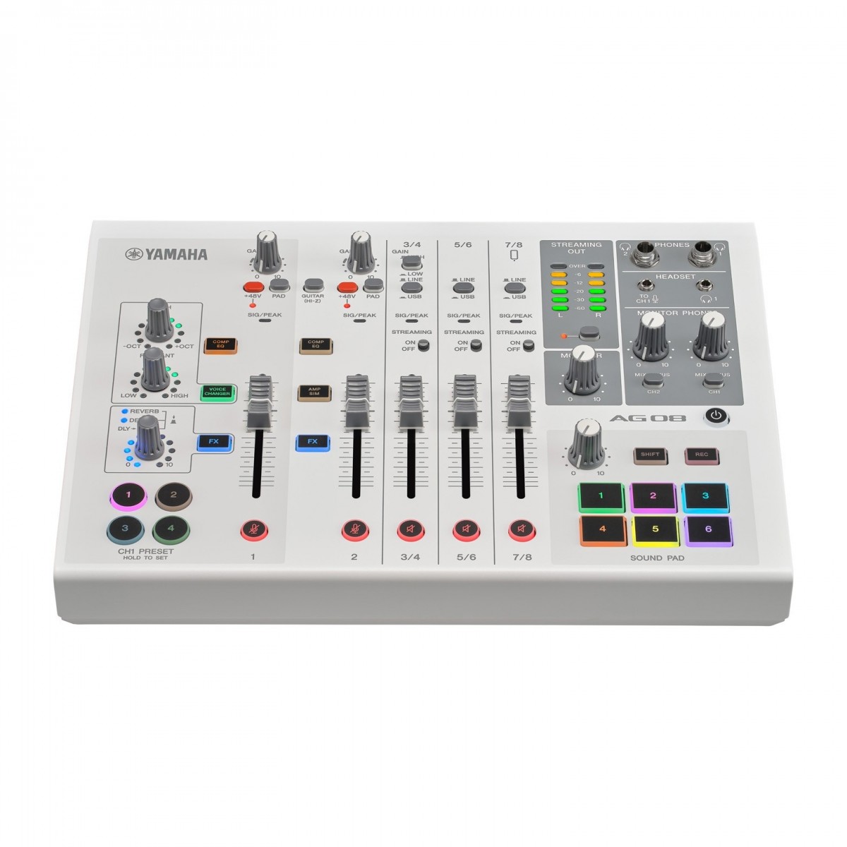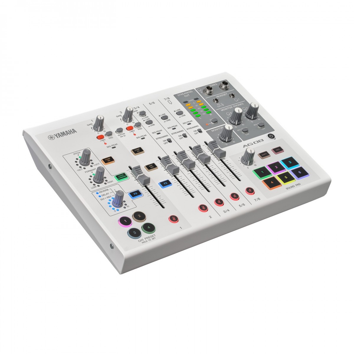 O Yamaha AG08 é um misturador de streaming e interface áudio USB com todas as funcionalidades, perfeito para criadores de conteúdos de todo o tipo, desde streaming a podcasting e vlogs. O AG08 possui dois canais de entrada de microfone com potência fantasma para utilização com microfones condensadores, perfeito para capturar a sua voz e a de quaisquer convidados ou amigos que se juntem a si na sua plataforma. Combinando estes canais de microfone com canais de linha estéreo flexíveis e atribuíveis que lhe permitem ligar smartphones, guitarras, teclados, ou áudio de computador através dos restantes oito canais.