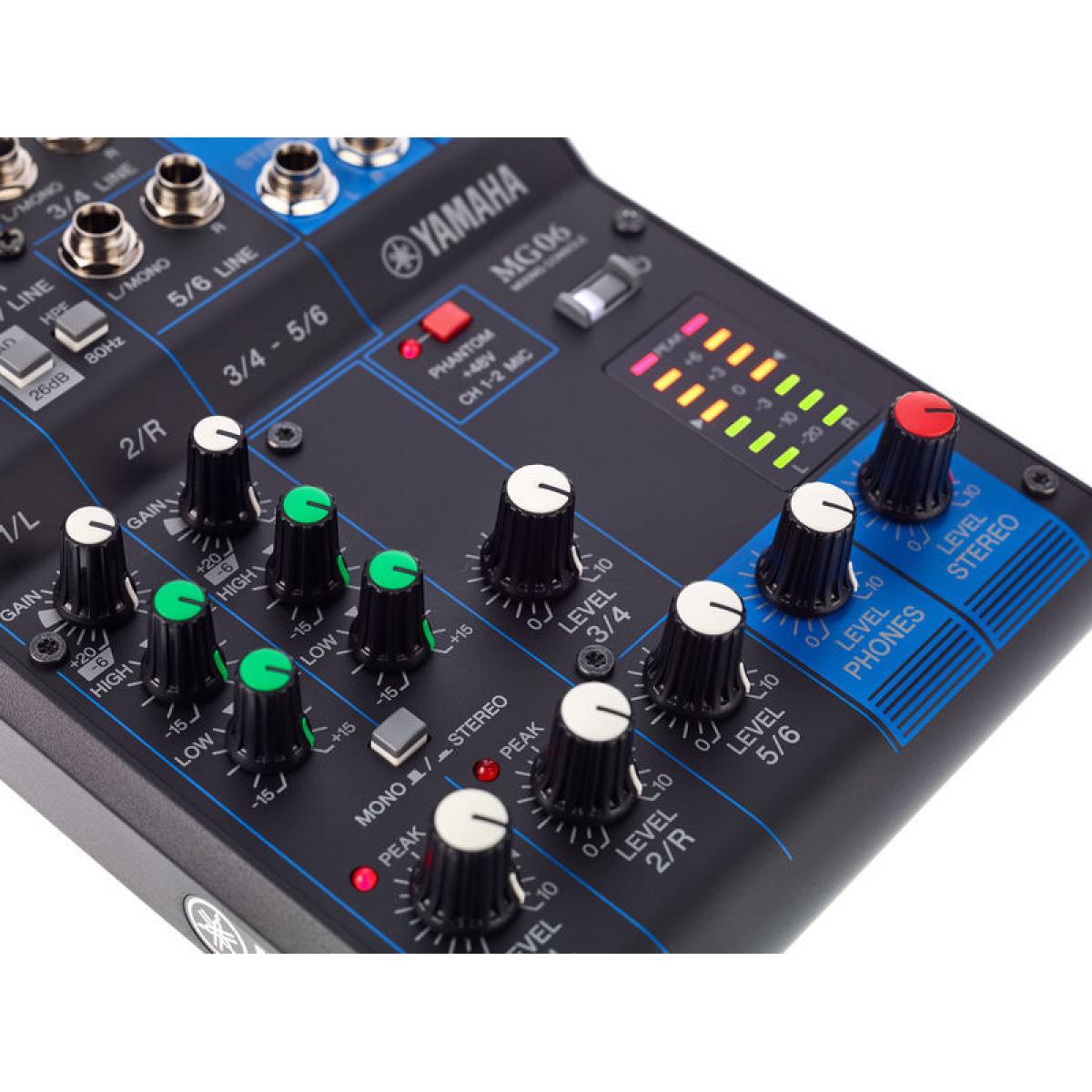 Para adicionar pequenos detalhes à sua mixagem geral, o MG06 inclui equalizadores de 3 bandas em todos os canais mono para lhe dar controle completo. Junto com um filtro high-pass confiável, o mixer analógico elimina ruídos indesejados de baixa frequência para uma mixagem incrivelmente limpa.