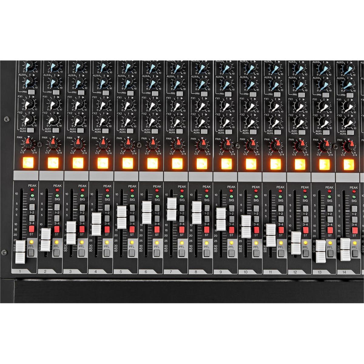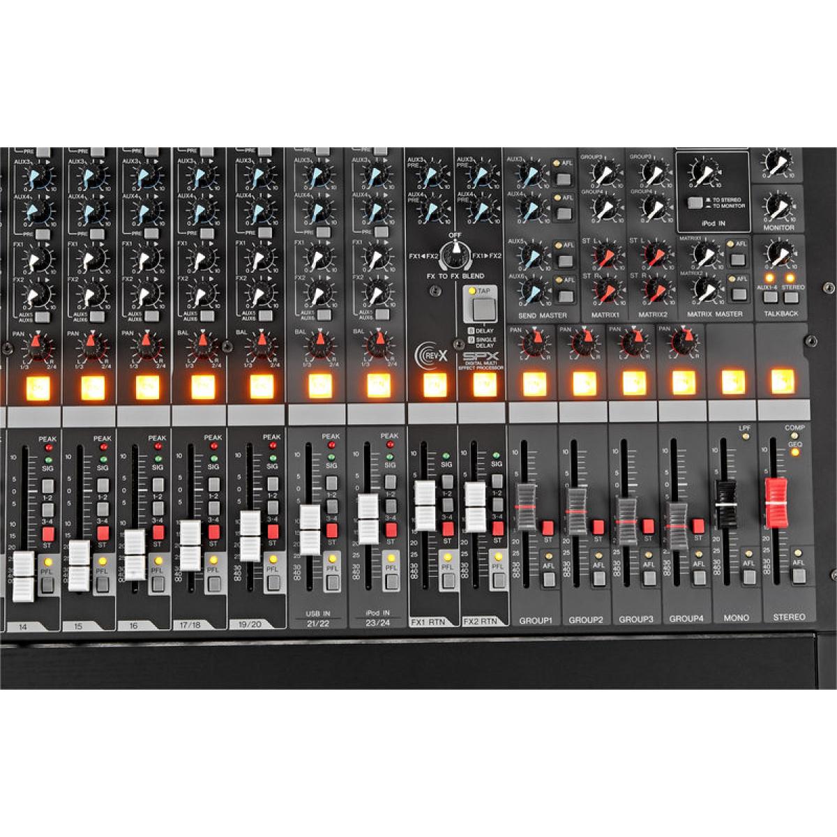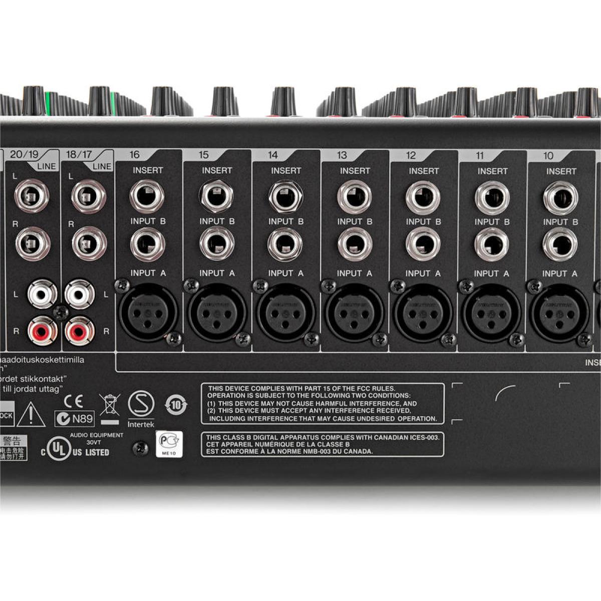 • Canais de mistura: 24 Entradas de linha (16 Mono e 4 Estéreo)