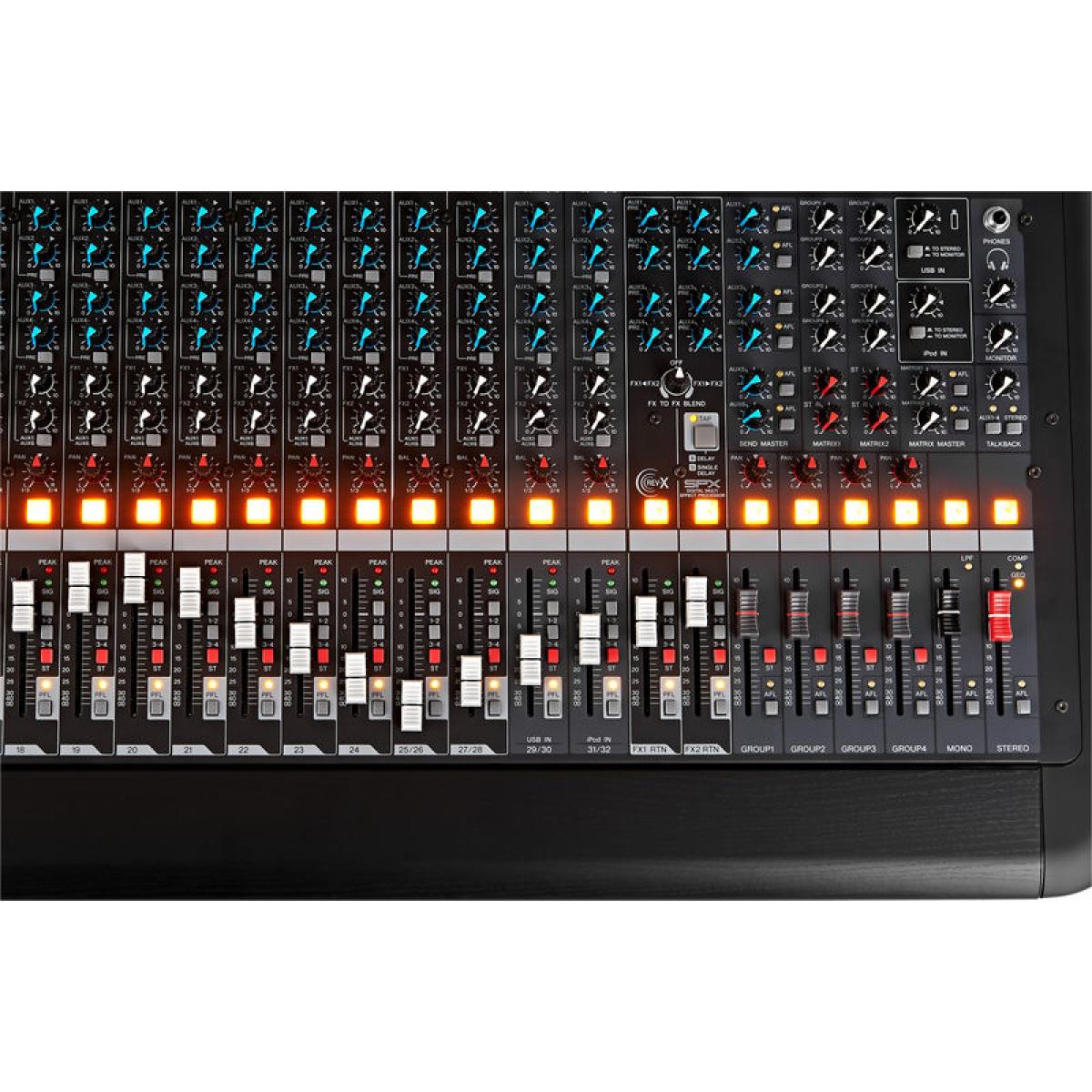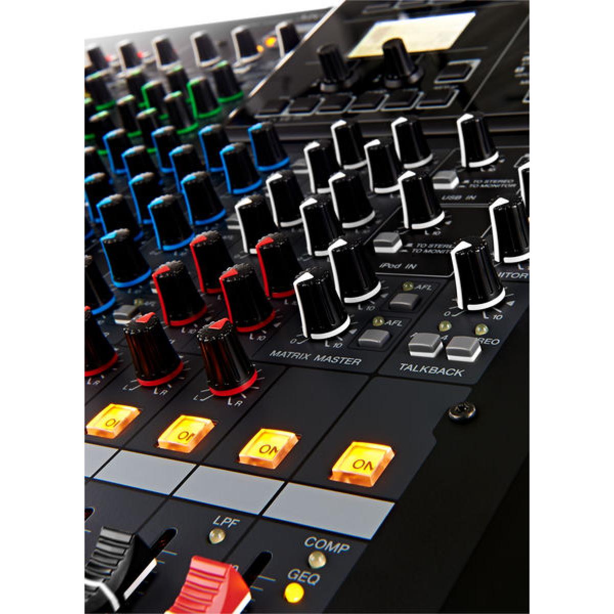 -Canais de mistura: 32 entradas de linha (24 mono e 4 estéreo)