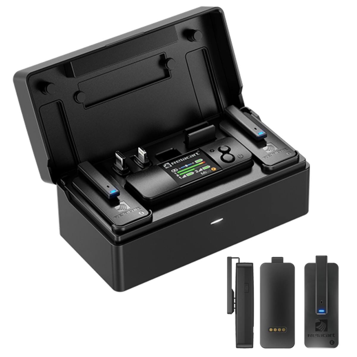 • Tempo de utilização da caixa de carregamento: com carga completa, carregue o RX e o 2TX ao mesmo tempo, proporcionando até cerca de 4 cargas. ;