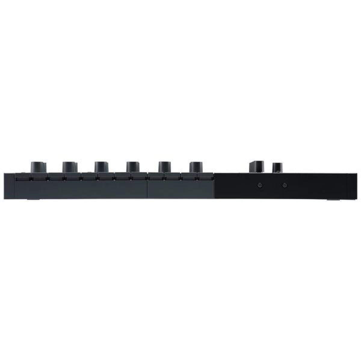 • ligações: Entrada AUX estéreo 3,5 mm mini jack, saída de auscultadores estéreo 3,5 mm mini jack, entrada e saída MIDI 3,5 mm mini jack, USB-C (áudio / MIDI / fonte de alimentação);