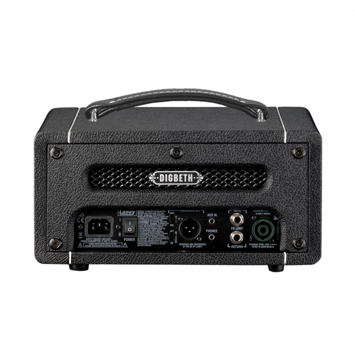 Conectar seus dispositivos nunca foi tão fácil como com o Laney Digbeth DB200H. Além do conector de entrada tradicional de 1/4 de polegada, há uma infinidade de outras opções de conetividade . Um loop de efeitos, localizado na parte de trás da cabeça, permite adicionar efeitos entre o pré-amplificador e a saída. Portanto, você pode experimentar distorção atrasada, em oposição a delay distorcido.