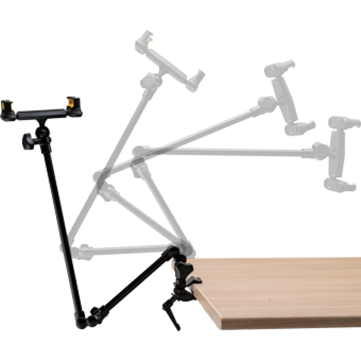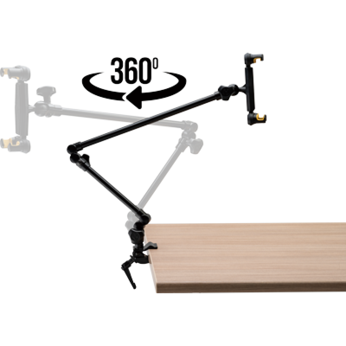• Rotação em ângulo total: O suporte para tablet possui uma junta esférica com vários pontos de ajuste que permitem que o braço gire livremente em todas as direções. ;