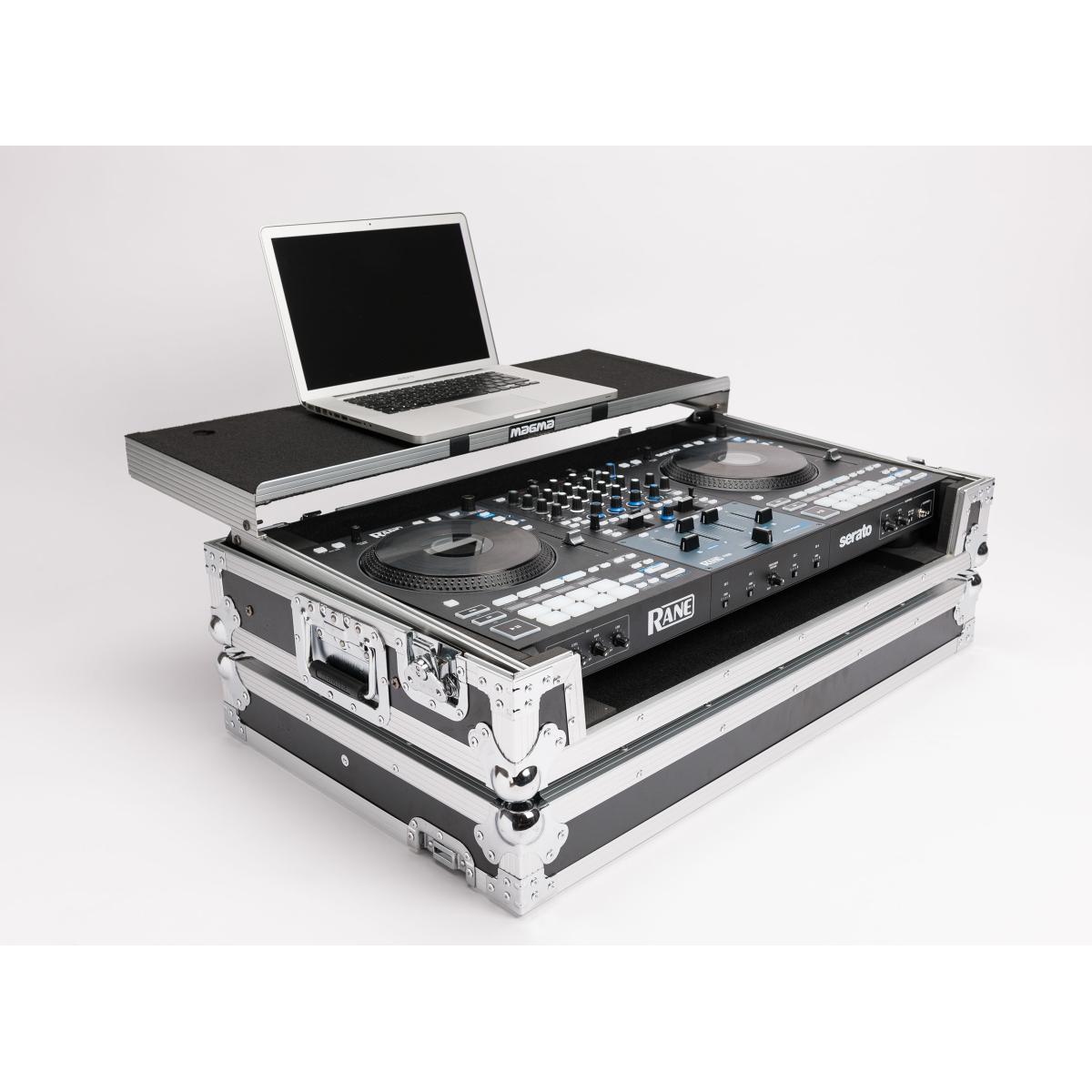 Personalizada para conter o novo controlador de DJ Rane Four. Fabricada em contraplacado laminado de vinil de 9 mm, perfis de alumínio robustos, fechos de borboleta resistentes e rodas de rolamento suaves, esta mala oferece a melhor protecção para utilização móvel na estrada.