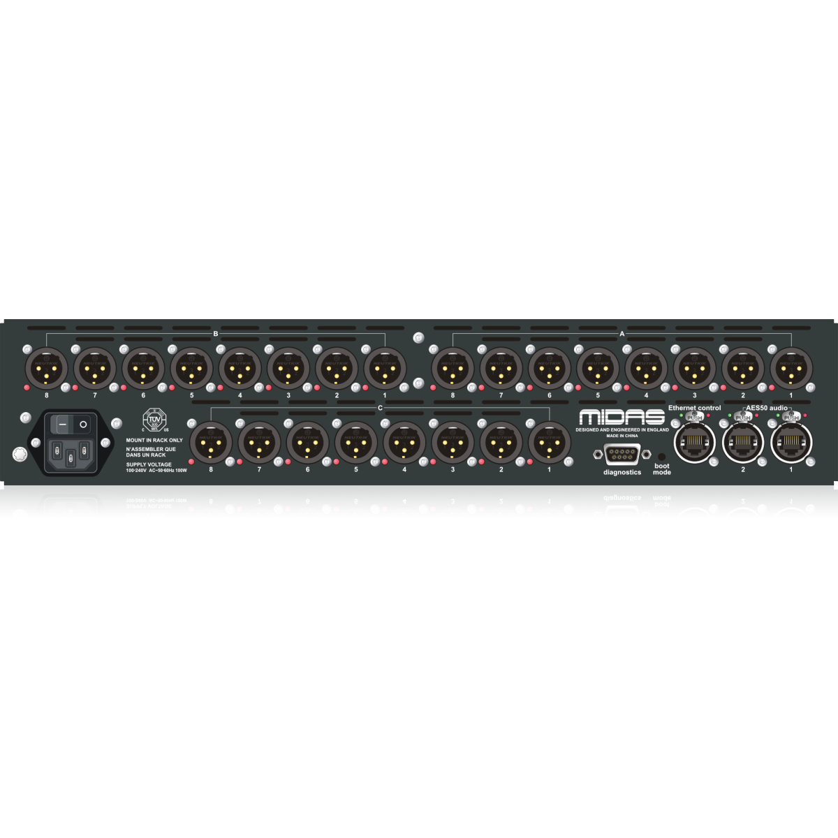 • 24 saídas de baixa impedância equilibradas electronicamente ao nível da linha de baixa impedância