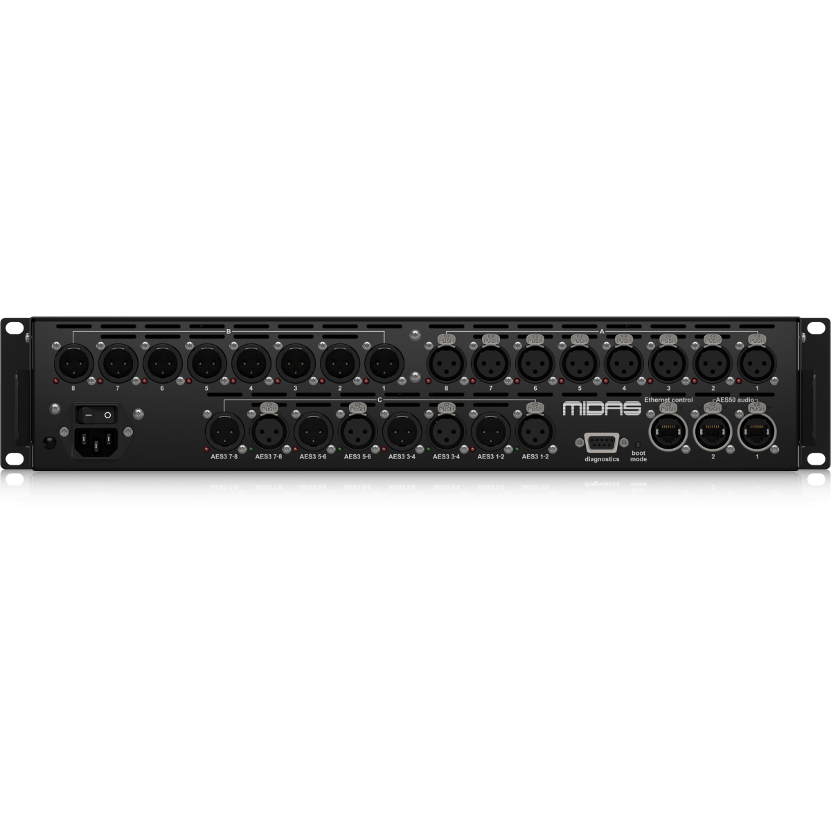 • 8 pré-amplificadores de microfone Midas premiados com potência fantasma de +48 V comutável