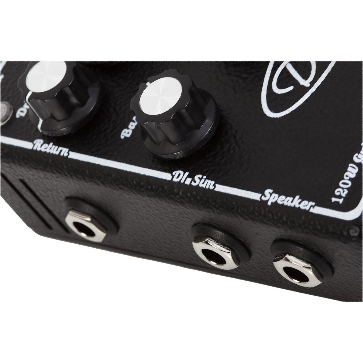 O DLA Mini-Amp, operando com a sua fonte de alimentação de 30 volts, é capaz de fornecer até 120 watts com bolhas a partir de uma pegada ligeiramente maior do que a carteira de um homem. Apresenta tudo o que deseja sem a penugem; loop de efeitos, simulação de armário separado, controlos de graves, médios e agudos, controlos de ganho e volume. A engenharia tecnológica sólida com uma sólida caixa de alumínio reforça o poderoso pontapé de mula do DLA na parte baixa do tórax. Os altos e médios são detalhados, com harmónicos exuberantes e um ataque que o jogador pode sentir imediatamente.