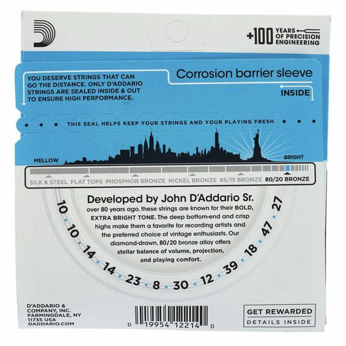Daddario EJ36 10-47 Light 12-String, 80/20 Bronze Acoustic Guitar Strings