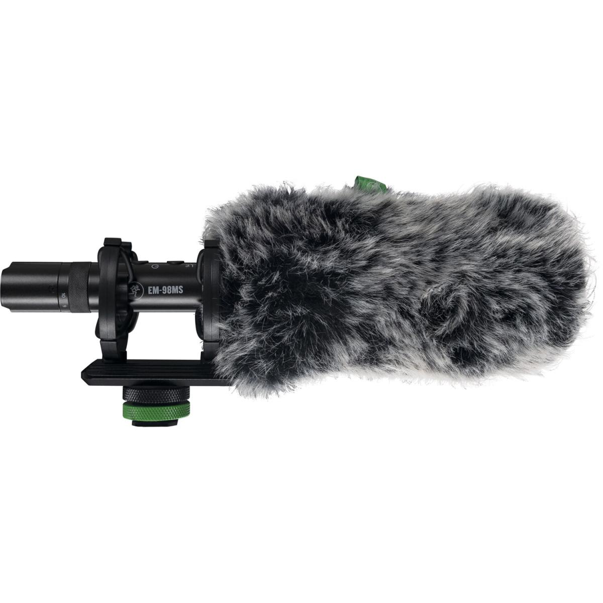 O EM-98MS desporta uma bateria interna de iões de lítio carregada por USB que proporciona um desempenho duradouro, e uma função de ligar/desligar automático assegura que o seu microfone liga e desliga automaticamente com os seus dispositivos. Os interruptores de alta passagem e -10 dB permitem uma maior eliminação de ruídos e protecção contra distorções, e o microfone vem com cabos rotulados concebidos para combinar perfeitamente o seu microfone com qualquer entrada de áudio de câmara ou dispositivo móvel inteligente, tornando-o o companheiro ideal para qualquer utilizador em movimento.
