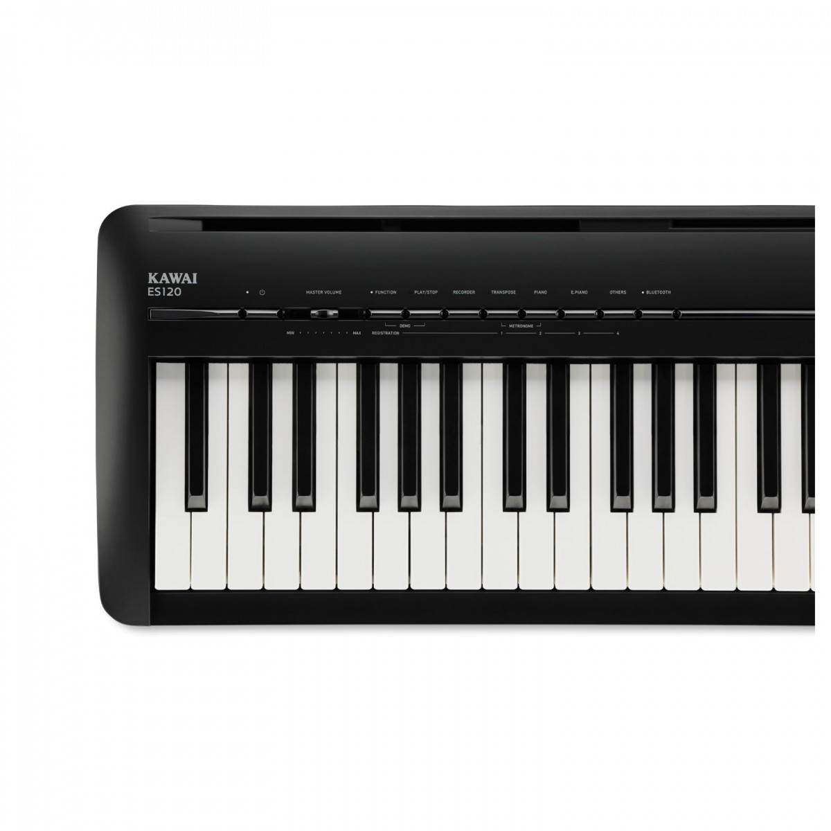 O Kawai ES120 apresenta grandes melhorias em relação ao anterior ES110. A Kawai tomou todos os aspetos principais do ES110 e atualizou-o. Tem um novo design no painel frontal, com botões e controles deslizantes redesenhados, e o chassi do instrumento também foi melhorado, sendo mais elegante que nunca. Com a melhorada Responsive Hammer Compact, a sensação será ainda melhor do que antes!