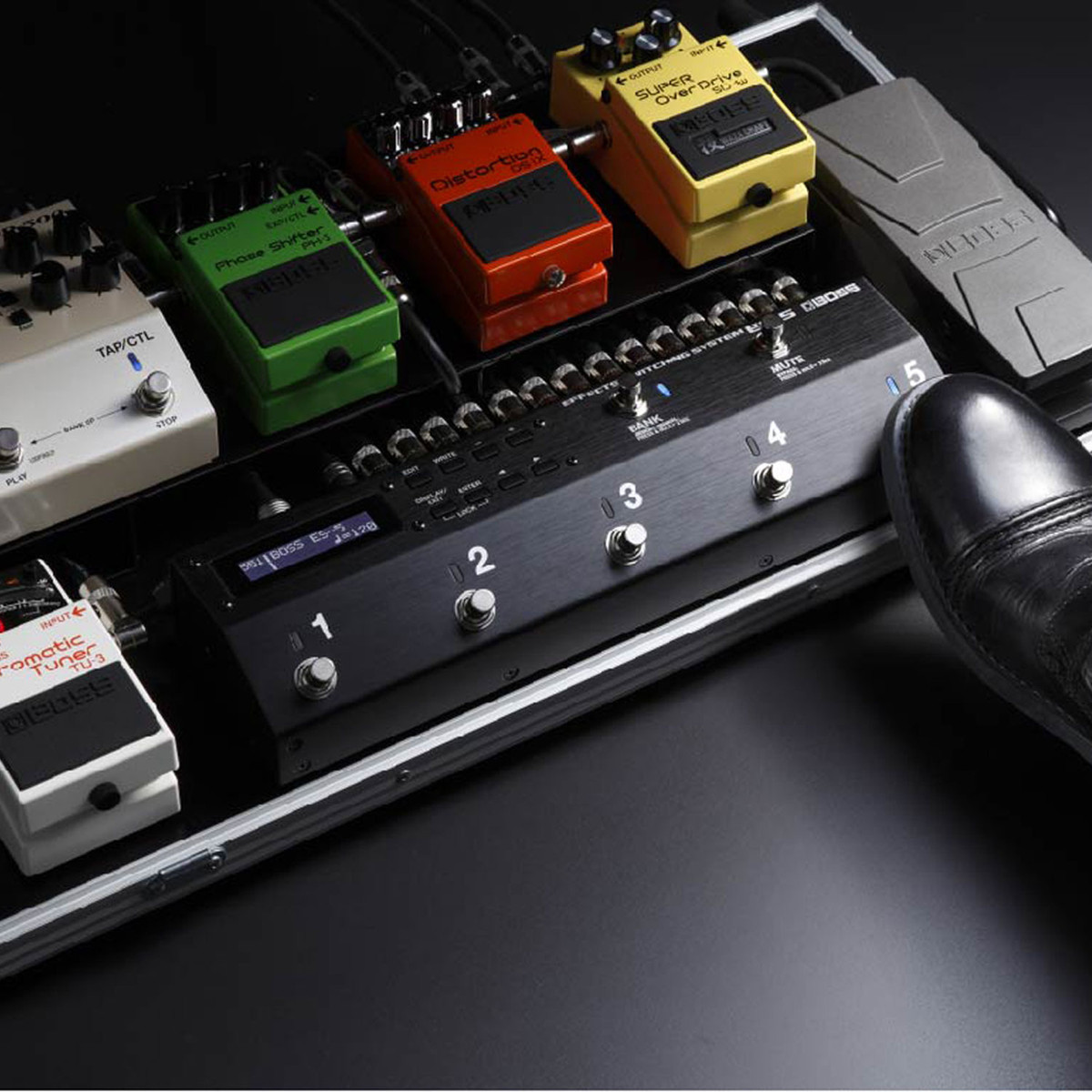 Além dos cinco loops de efeitos na placa, o Boss ES-5 possui dois conectores de saída de controle TRS e um conector de entrada de controle / expressão TRS. A capacidade MIDI também está incluída, o que é ideal para integrar perfeitamente efeitos de piques controlados MIDI.
