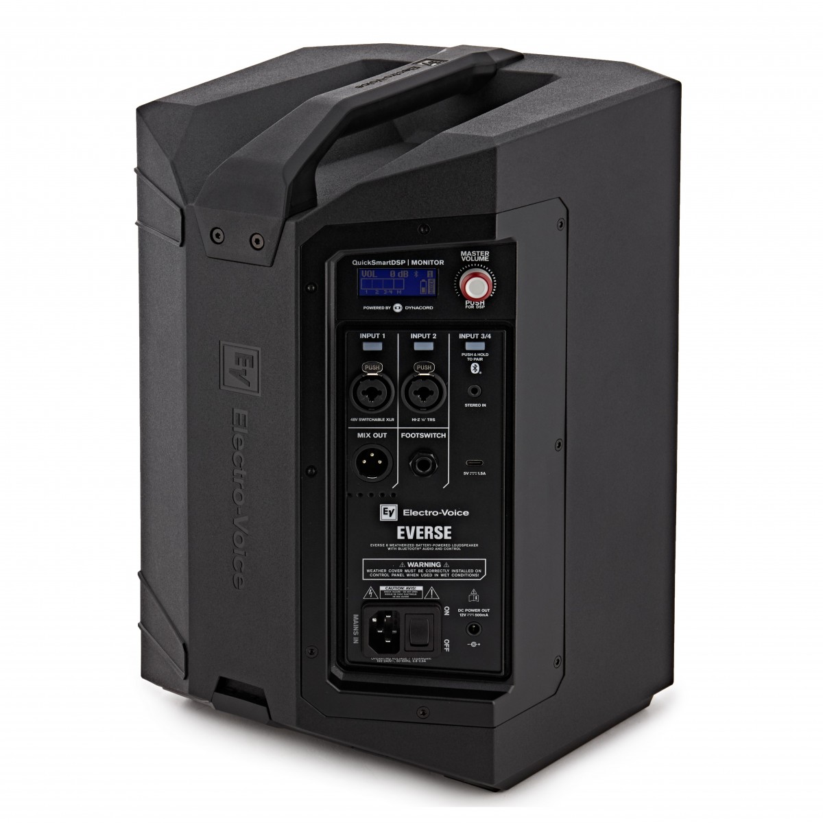O Everse 8 é alimentado por uma bateria de iões de lítio que proporciona até 12 horas de utilização contínua a partir de uma única carga. Esta bateria também dispõe de um circuito de protecção contra sobrecarga para garantir a sua duração a longo prazo. A sua caixa de polipropileno, bem como uma tampa de entrada à prova de intempéries que protegerá o seu conector, tendo uma classificação IP43 para utilização no exterior, protegendo-o de salpicos e chuva ligeira. Perfeito para eventos ao ar livre, busking, práticas de banda, e muito mais, o Everse 8 é um altifalante PA portátil extremamente versátil e avançado.