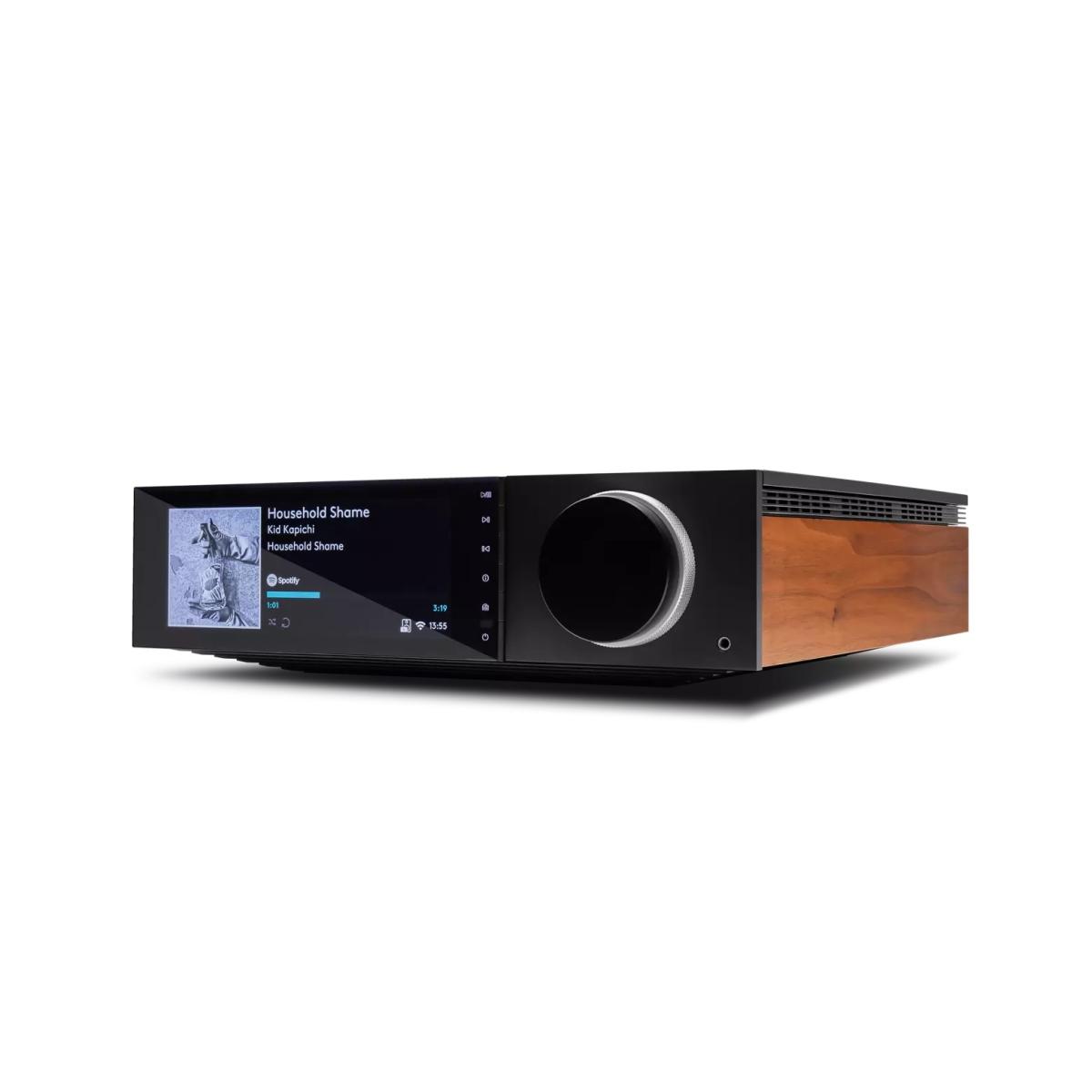 • Entrada de áudio USB assíncrona. 3 entradas digitais. TV ARC. 3 entradas analógicas (1 XLR balanceado). Entrada fono integrada. Acabamento lateral personalizável. Tela grande de 6,8 ". Seletor de entrada / volume concêntrico duplo.