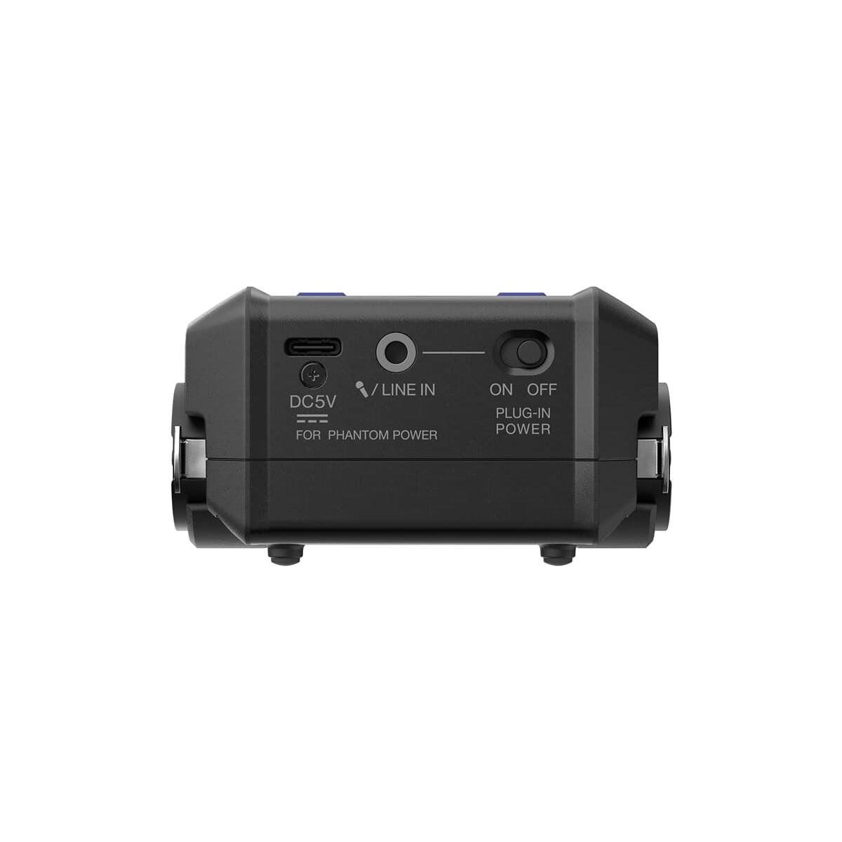 • Phantom Power: O EXH-6e pode fornecer phantom power para as 2 entradas combinadas XLR/TRS. Ligue a porta USB-C da cápsula a uma tomada CA ou bateria USB para alimentar microfones condensadores. A alimentação por ficha também está disponível para microfones de lapela ligados à entrada de 3,5 mm;