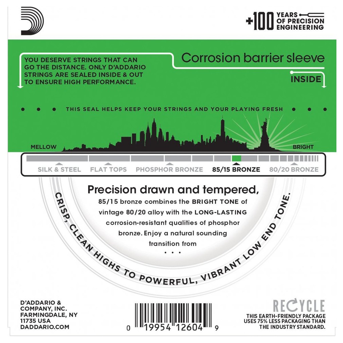 As Cordas Acústicas de Bronze D'Addario EZ890 85/15 combinam bronze 80/20 com as características de vida mais longa do Bronze de Fósforo, procionando um tom brilhante que acomoda uma variedade de estilos musicais. O fio envoltório de Bronze 85/15 é enrolado com precisão num núcleo de aço carbono de alto perfil hexagonal cuidadosamente desenhado, resultando num tom sonoro de longa duração, com excelente entonação, perfeito para qualquer nível de aparelho acústico.