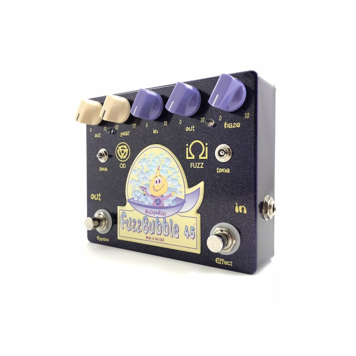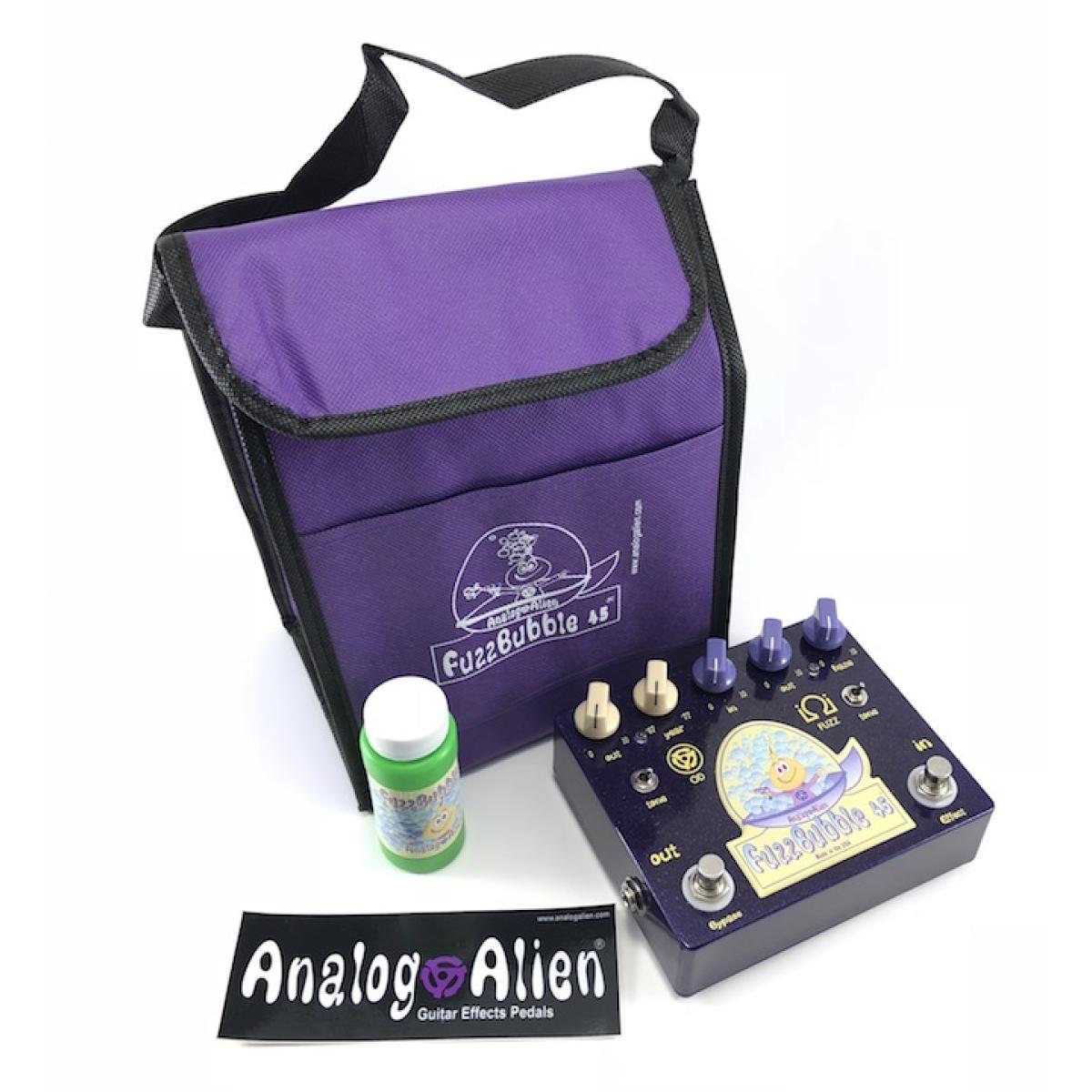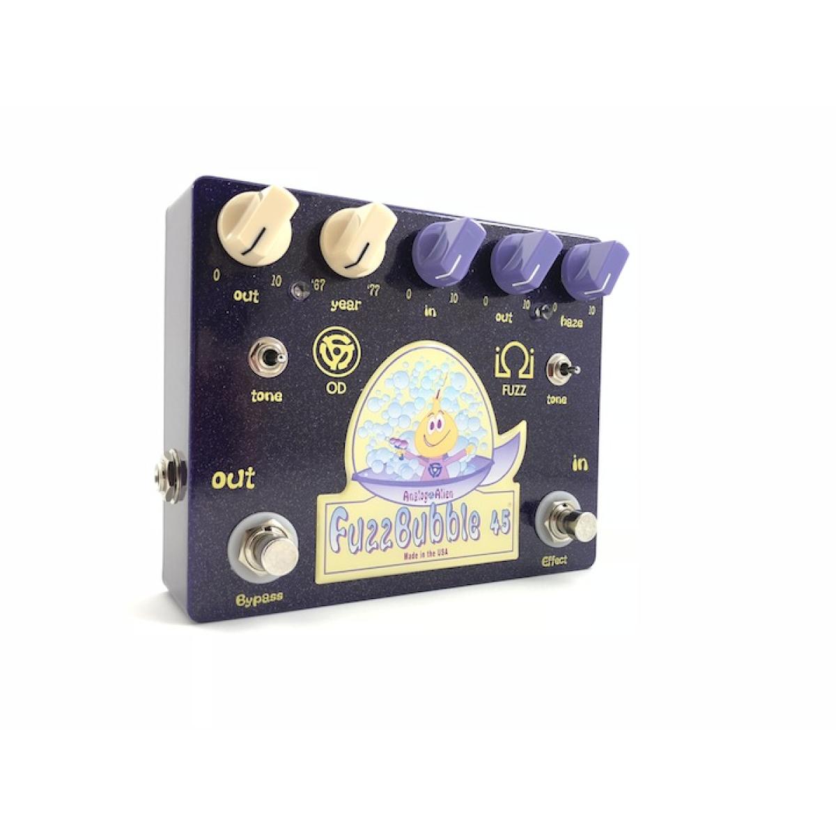 O Analog Alien FuzzBubble 45 foi inspirado pelos tons épicos de guitarra de bandas como The Beatles, The Rolling Stones, The Who e Jimi Hendrix. Enquanto a sua guitarra e o seu amplificador irão, claro, adicionar o seu próprio carácter ao FuzzBubble-45, o seu tom é instantaneamente icónico.