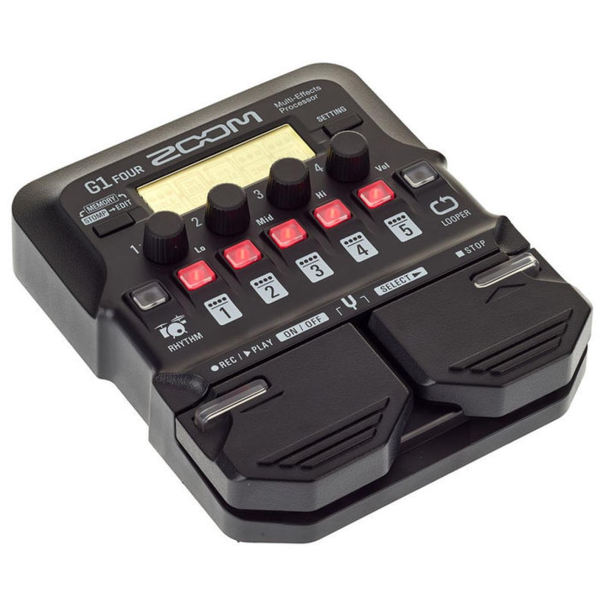 Encontre o seu tom. Com o Pedal Multi-Efeitos Zoom G1 FOUR, você tem à sua disposição uma série de ferramentas de modelagem de tom. Mais de 60 efeitos integrados com modelos de 13 A permitem explorar um novo mundo de performance sonora. Além disso, com o software gratuito Guitar Lab da Zoom, você pode mergulhar nas profundezas de uma enorme biblioteca de conteúdo adicional e efeitos para download.