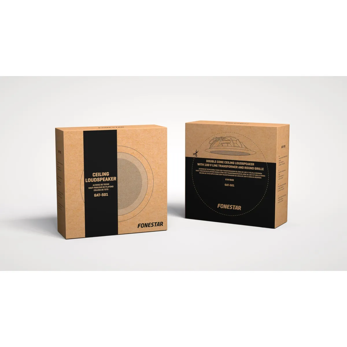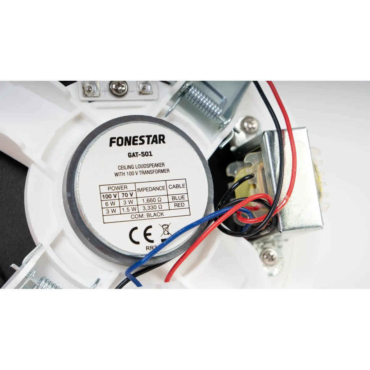 A Fonestar GAT-501 é uma coluna de teto com transformador de linha de 100 V, ideal para sistemas de sonorização e música ambiente em instalações comerciais e profissionais.