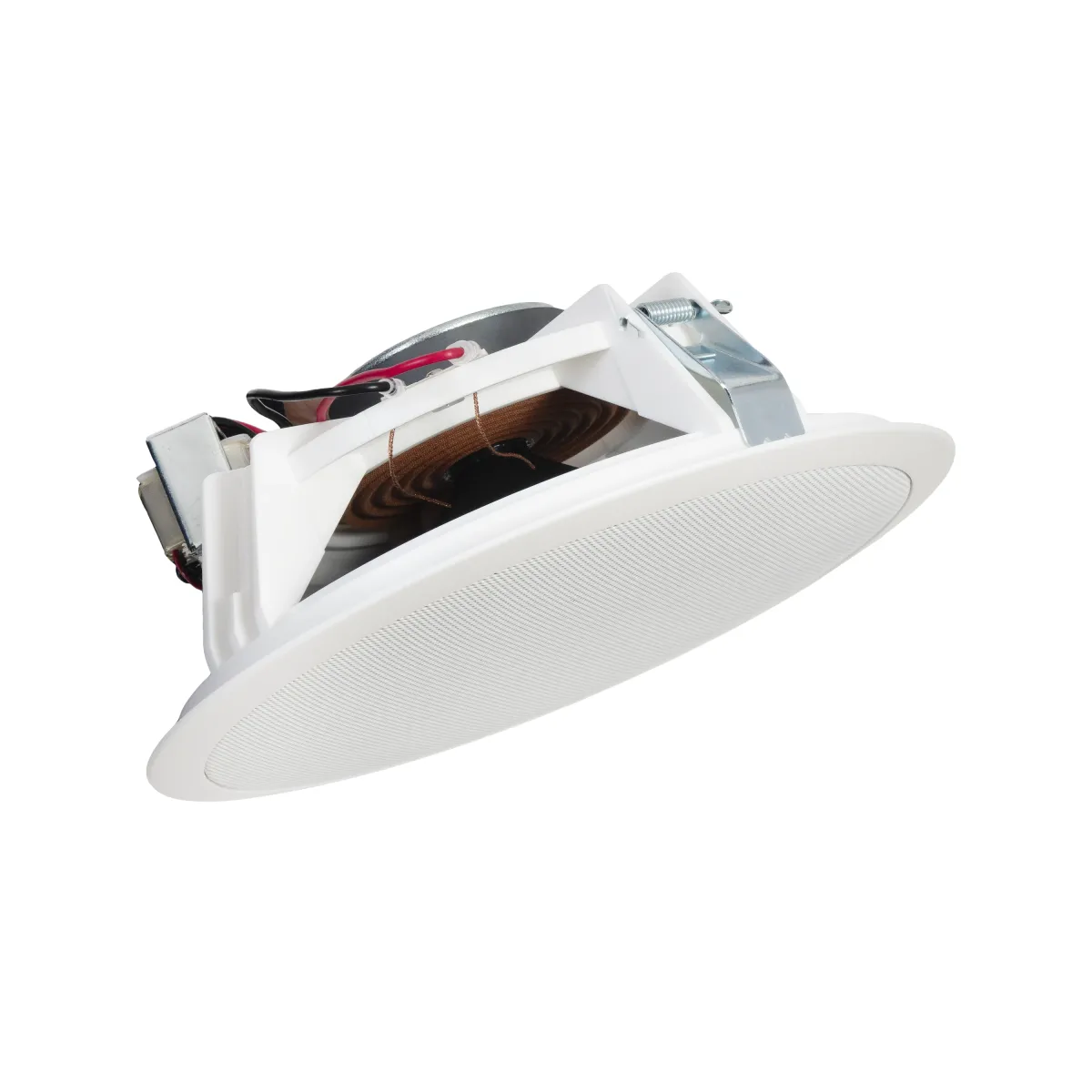 Coluna de teto Fonestar GAT‑801 com transformador de linha de 100 V, ideal para instalações comerciais, lojas, hotéis e espaços públicos, garantindo som equilibrado e cobertura uniforme.