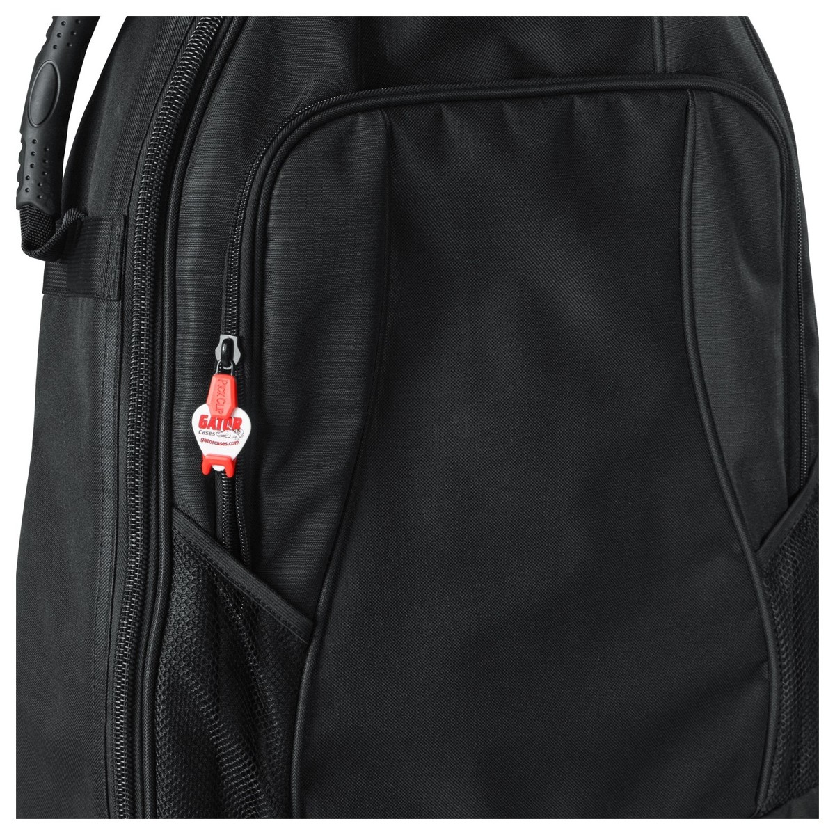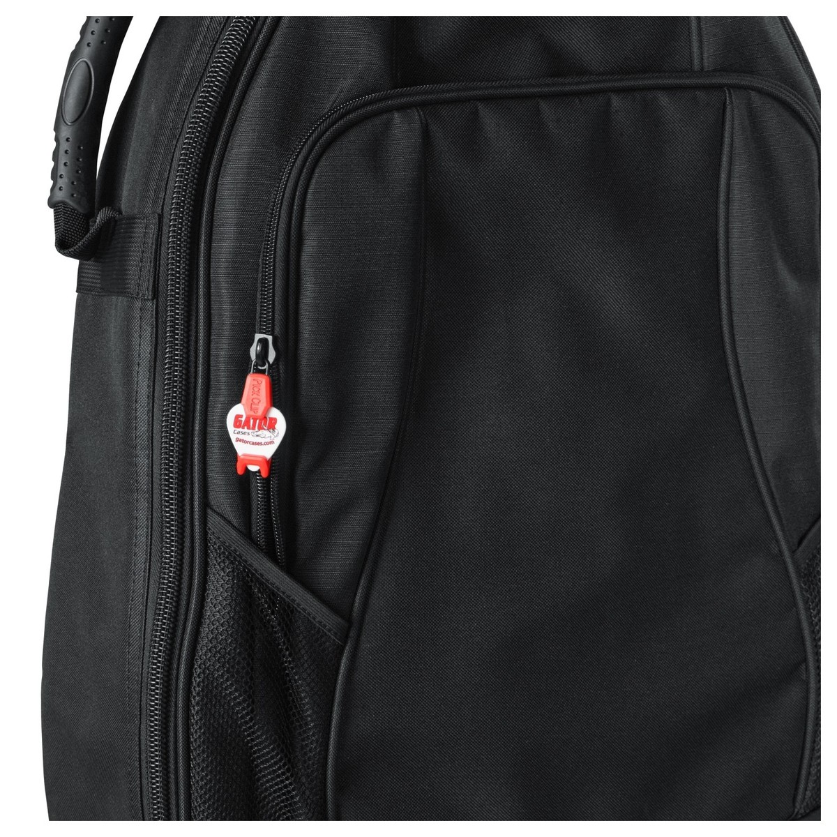 Perfeito para o músico em viagem, esta bolsa inclui alças acolchoadas estilo mochila e acolchoamento nas costas que não apenas mantêm a guitarra estável quando carregada, mas também a tornam confortável. Melhor ainda, você nunca ficará sem as coisas de que precisa, esteja no estúdio, no palco ou apenas tocando com amigos. A pick-clip com patente pendente é projetada para segurar uma pick de emergência para performances improvisadas, e o grande bolso externo é ideal para armazenar uma variedade de acessórios. Você sempre estará preparado quando viajar com esta bolsa Gator premium.