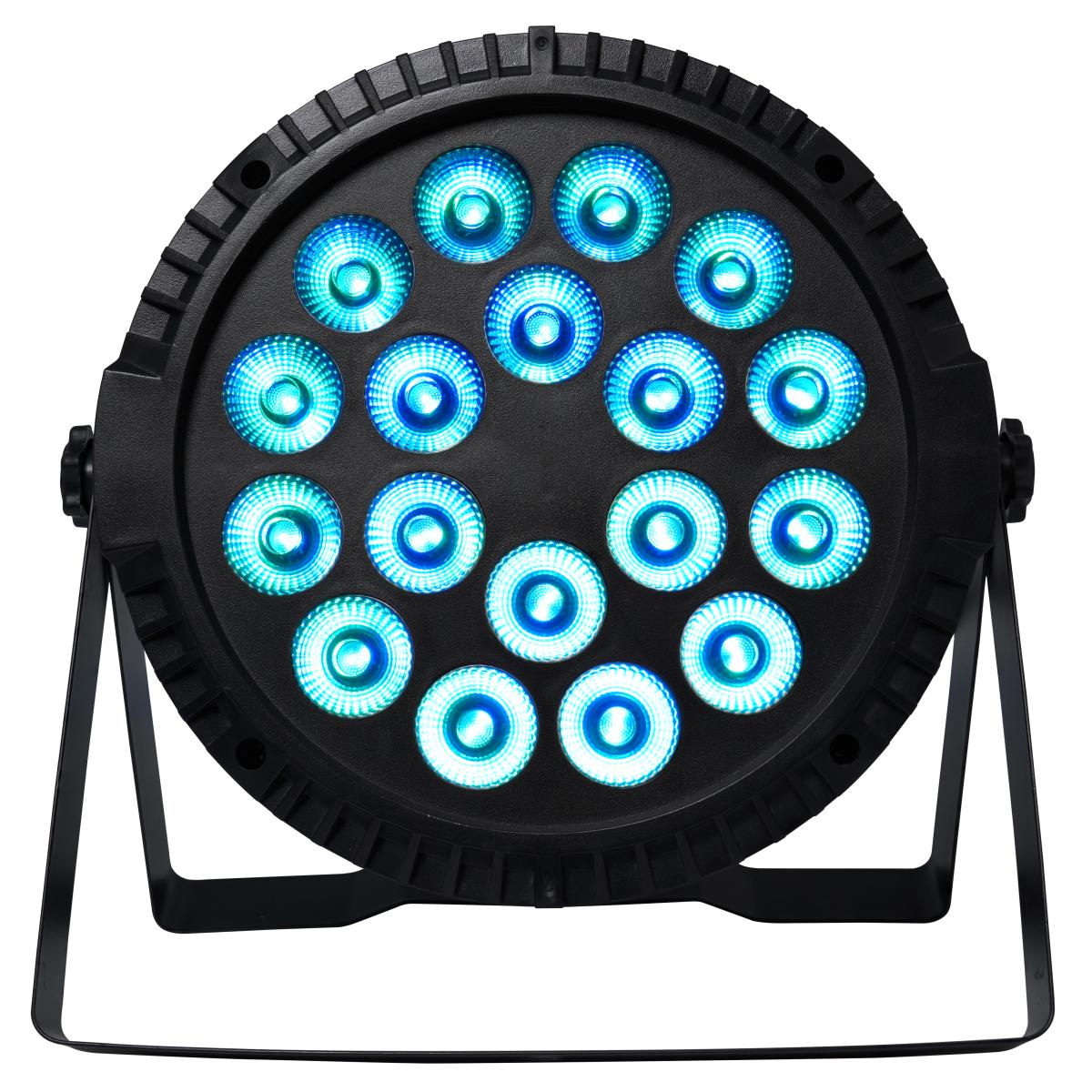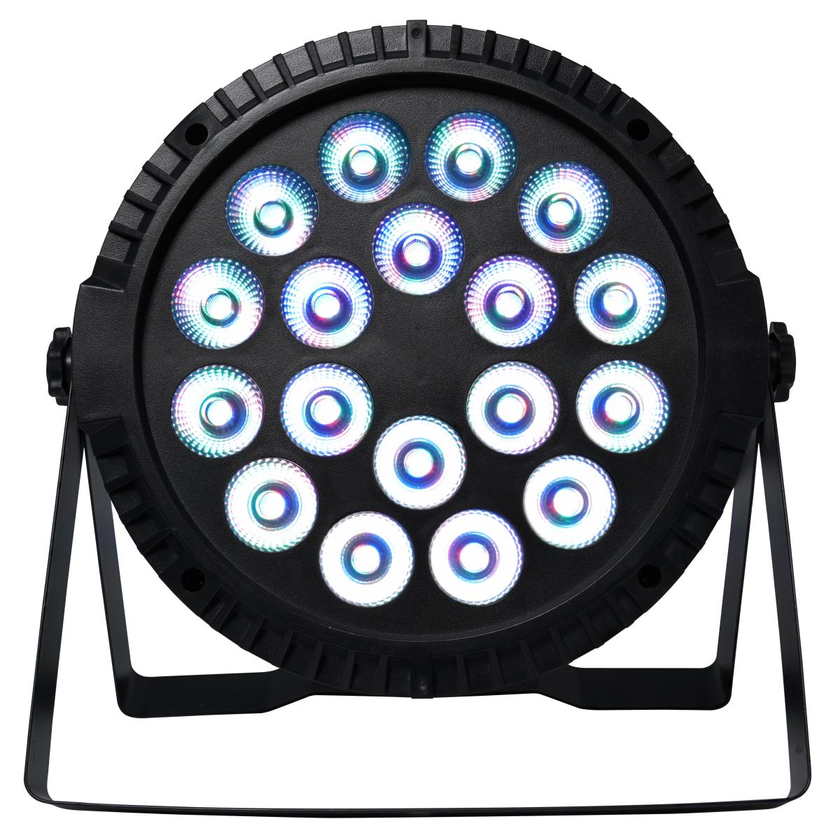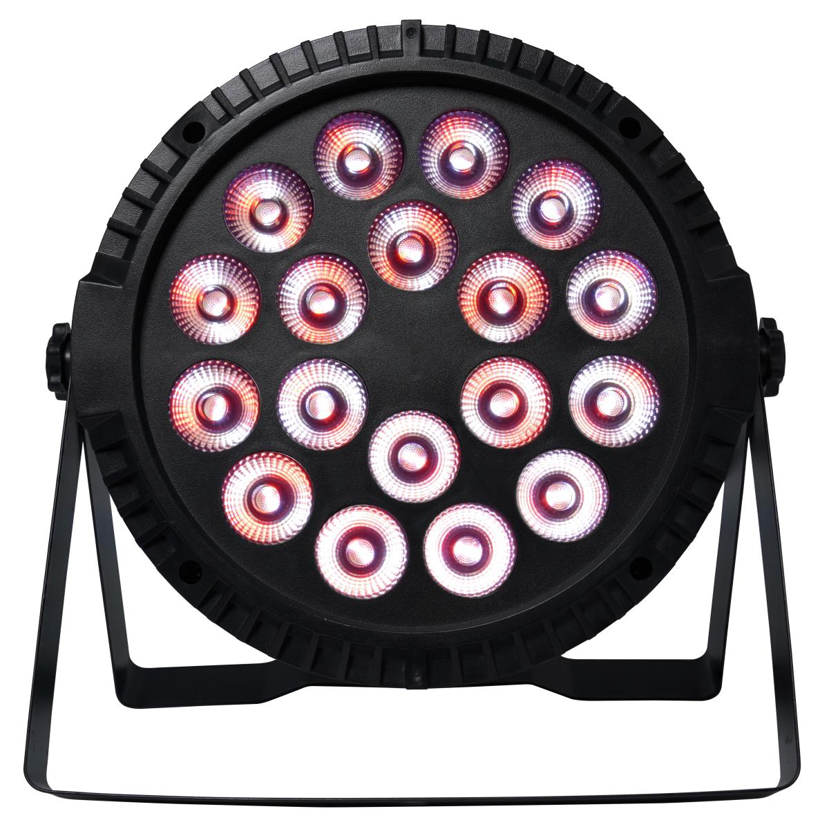 LED PAR com 18 LEDs de 10W de quatro cores (RGBW).