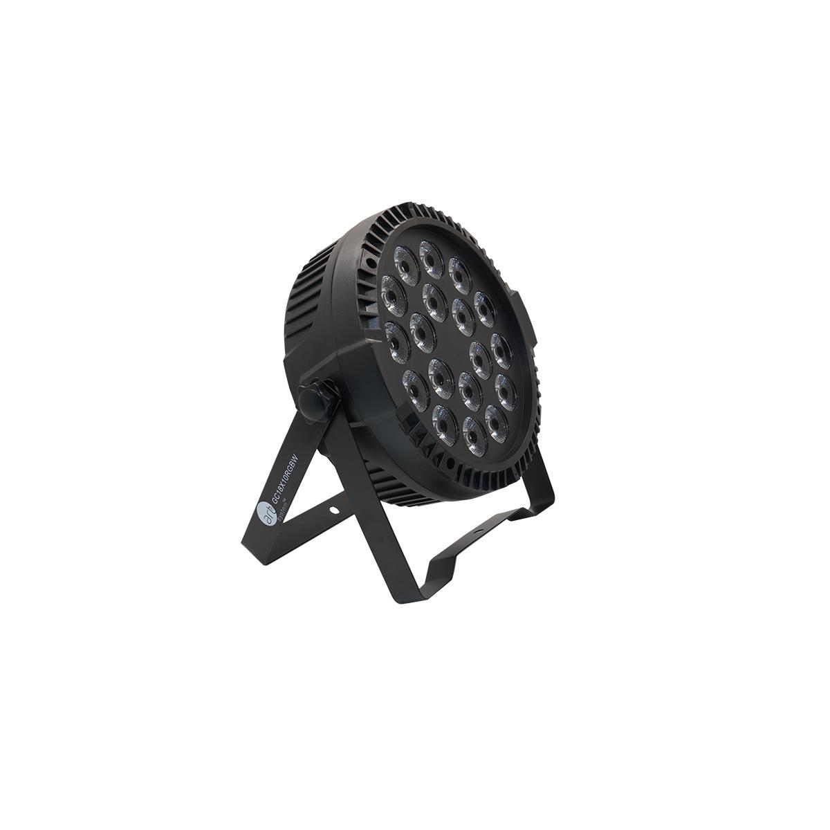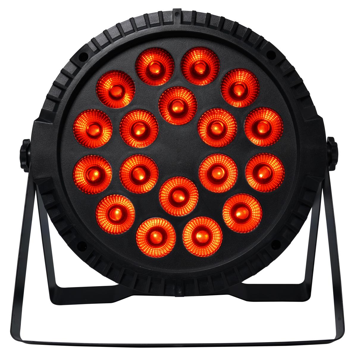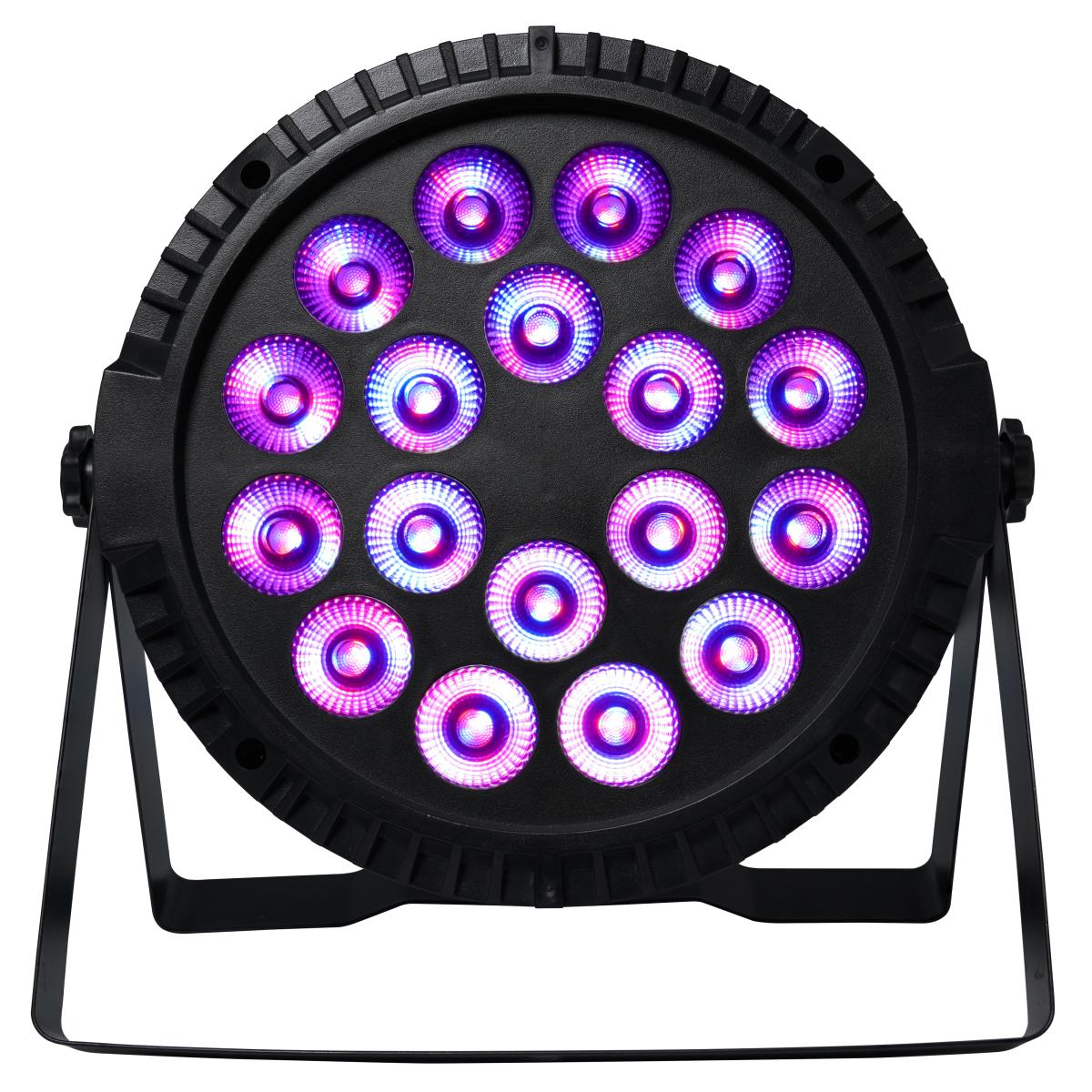 LED PAR com 18 LEDs de 10W de quatro cores (RGBW).