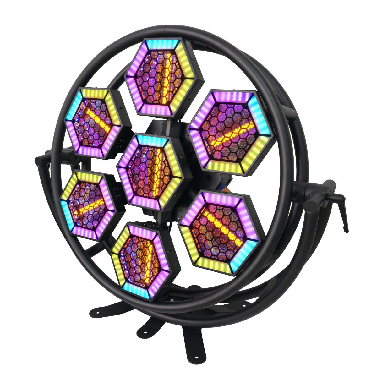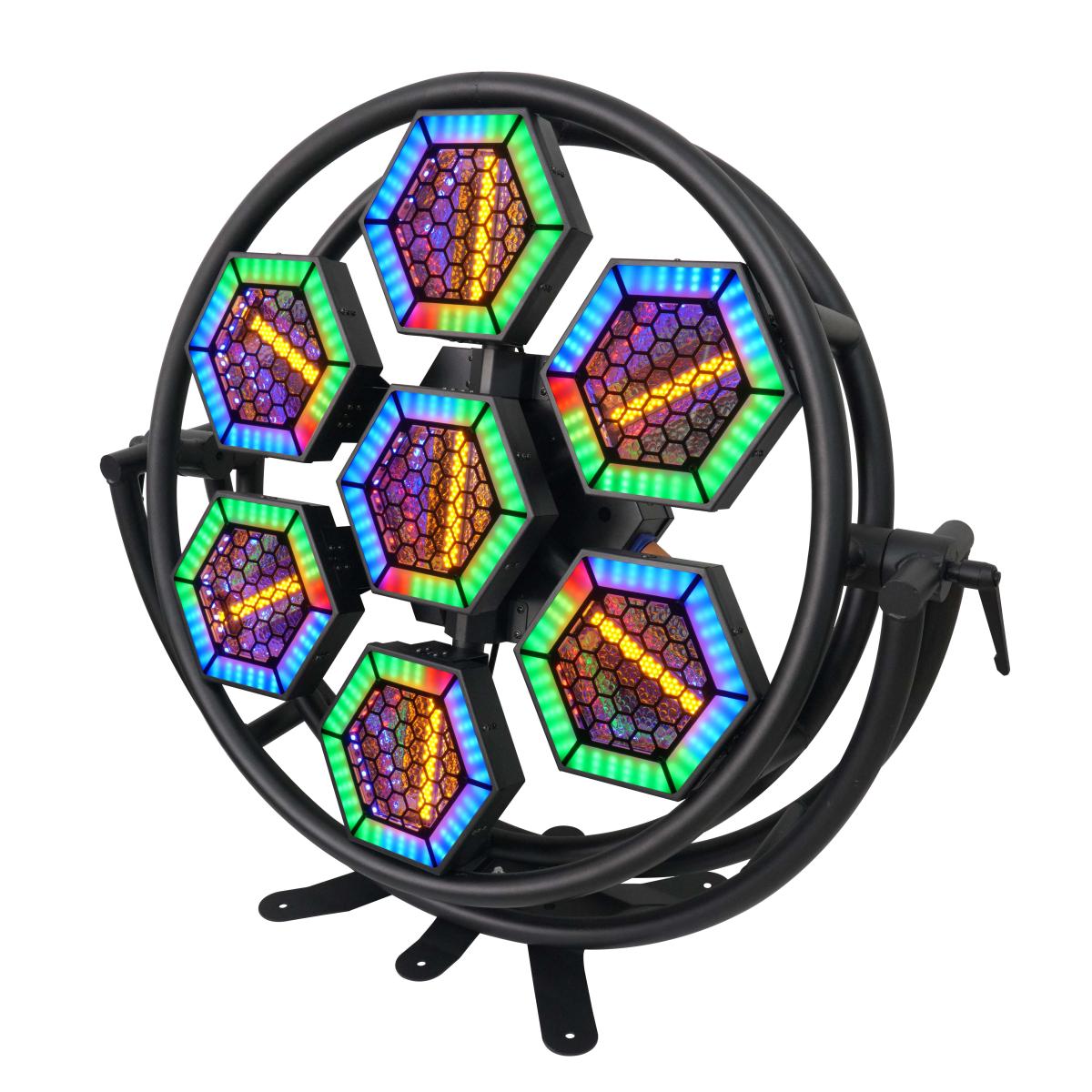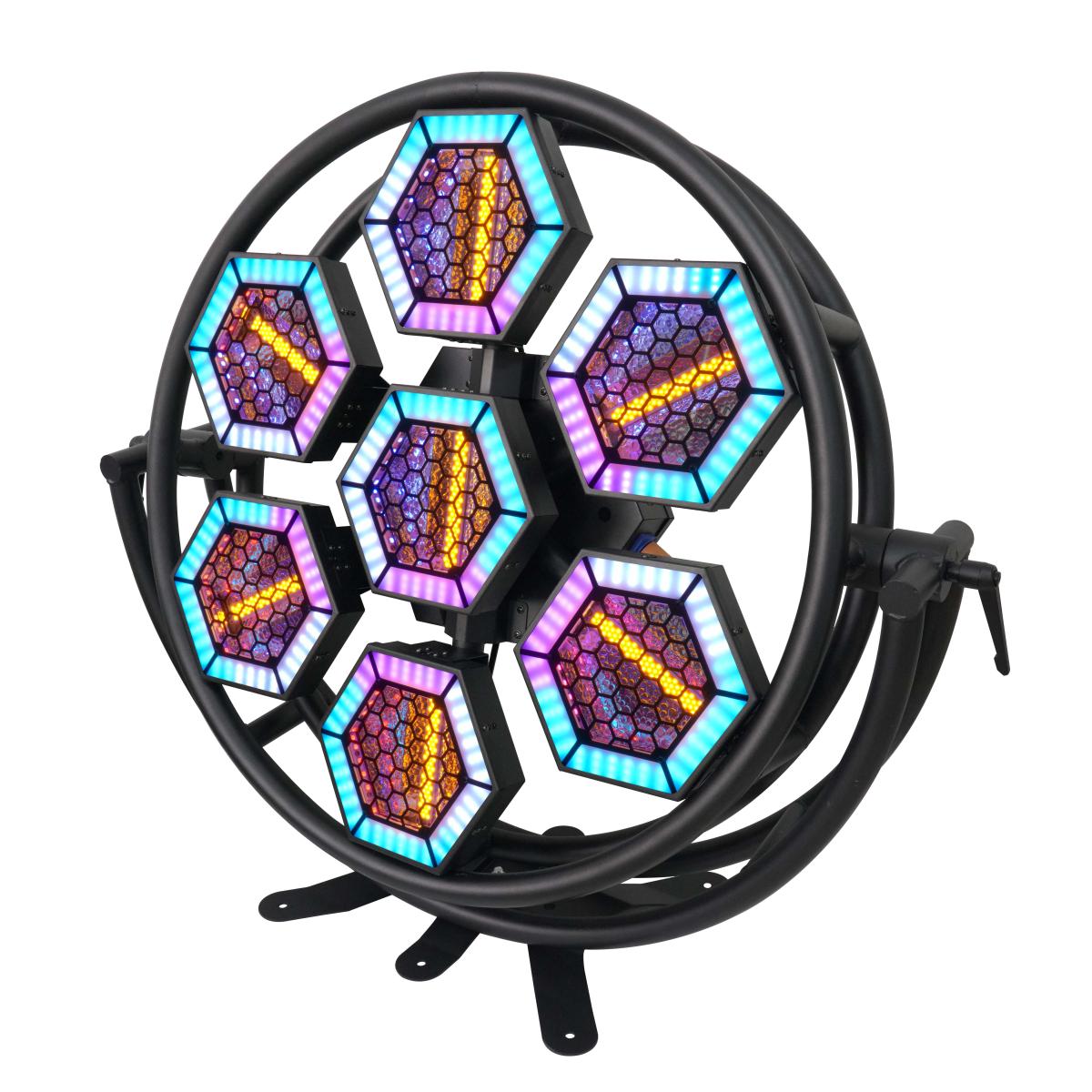 O  é um projetor de iluminação profissional de alto desempenho com design retro, ideal para grandes palcos, concertos, discotecas e produções audiovisuais exigentes. Graças à combinação de potentes LEDs COB branco quente e uma elevada densidade de LEDs RGB, proporciona efeitos visuais impressionantes, envolventes e altamente dinâmicos.