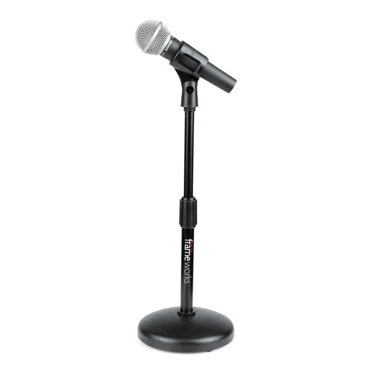 • Suporte para microfone de secretária com base redonda ponderada e altura ajustável;