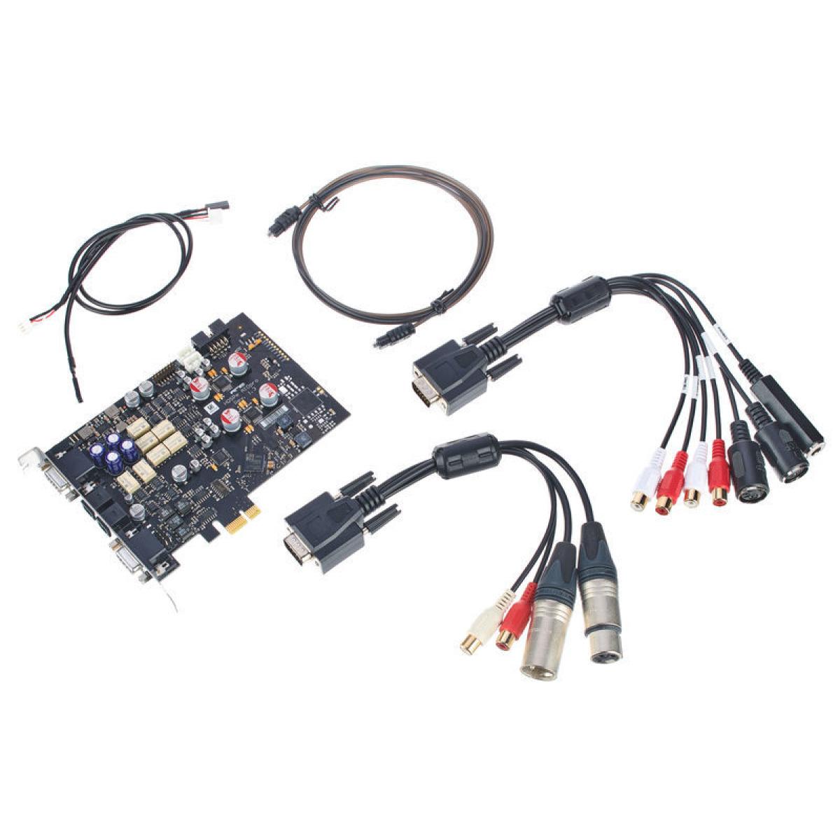 nível de saída do fone de ouvido +19 dBu / +7 dBu (potência alta / baixa); Conectores: 2x D-Sub padrão para patch cord com 2x entrada de linha RCA, 2x saída de linha RCA, saída de fone de ouvido estéreo de 6,3 mm, AES / EBU, SPDIF coaxial, MIDI I / O, E ADAT / SPDIF óptico / S;