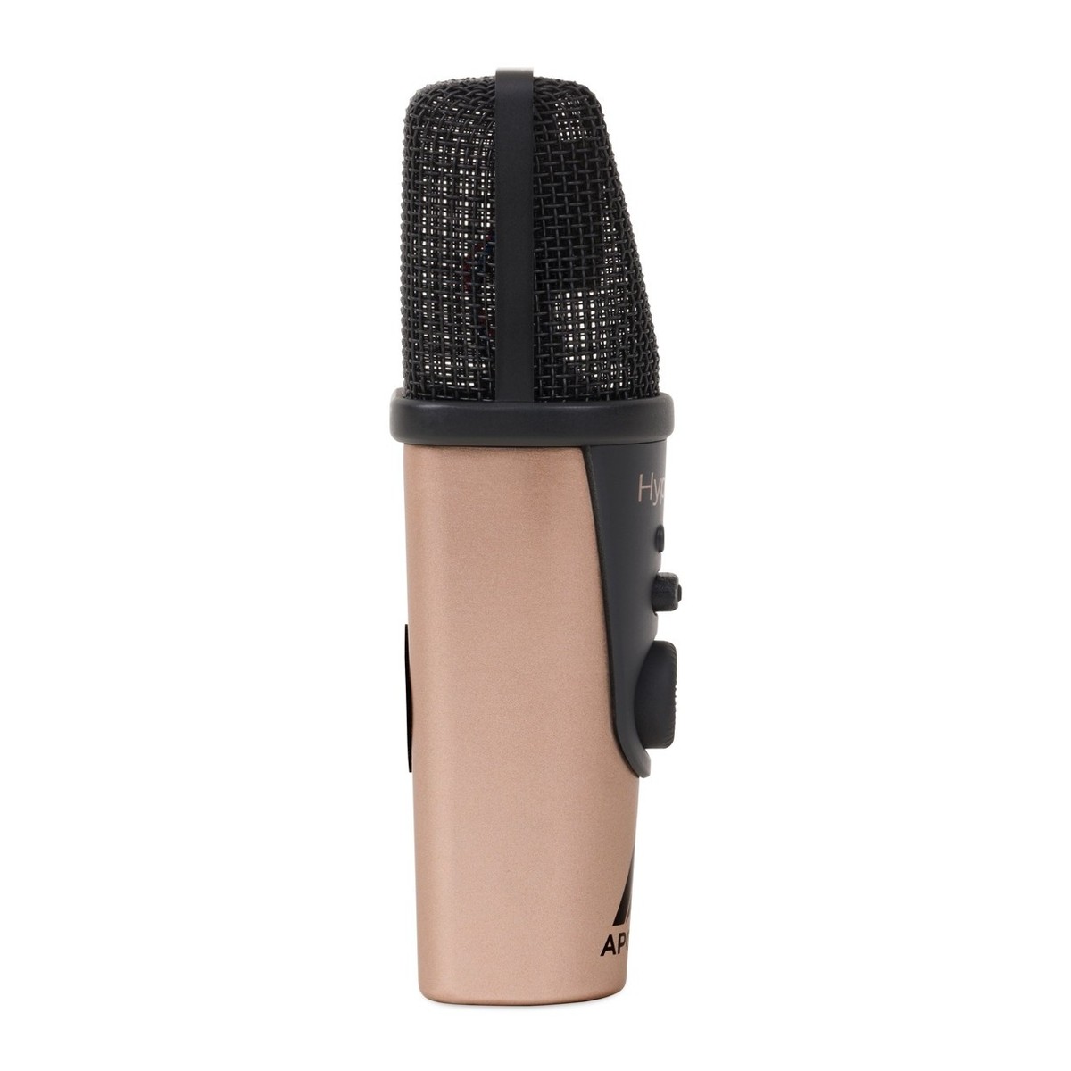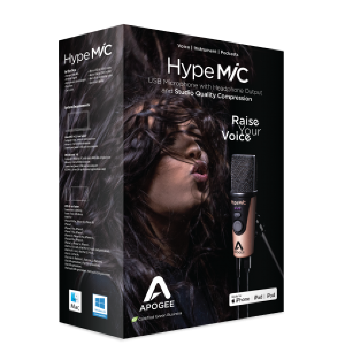 Uma cápsula condensadora cardióide premium emparelhada com o circuito de conexão PureDIGITAL da Apogee garante uma qualidade de som cristalina de até 24 bits / 96kHz. Mas o HypeMiC não é apenas um microfone ... Apresentando um compressor analógico de estúdio integrado, você pode dar às suas gravações aquele impacto e definição extras para realmente fazer seu som brilhar. Três modos de compressão separados permitem ajustar o som para o uso desejado, com ajuste intuitivo por meio do codificador giratório de ganho de entrada multiuso no painel frontal.