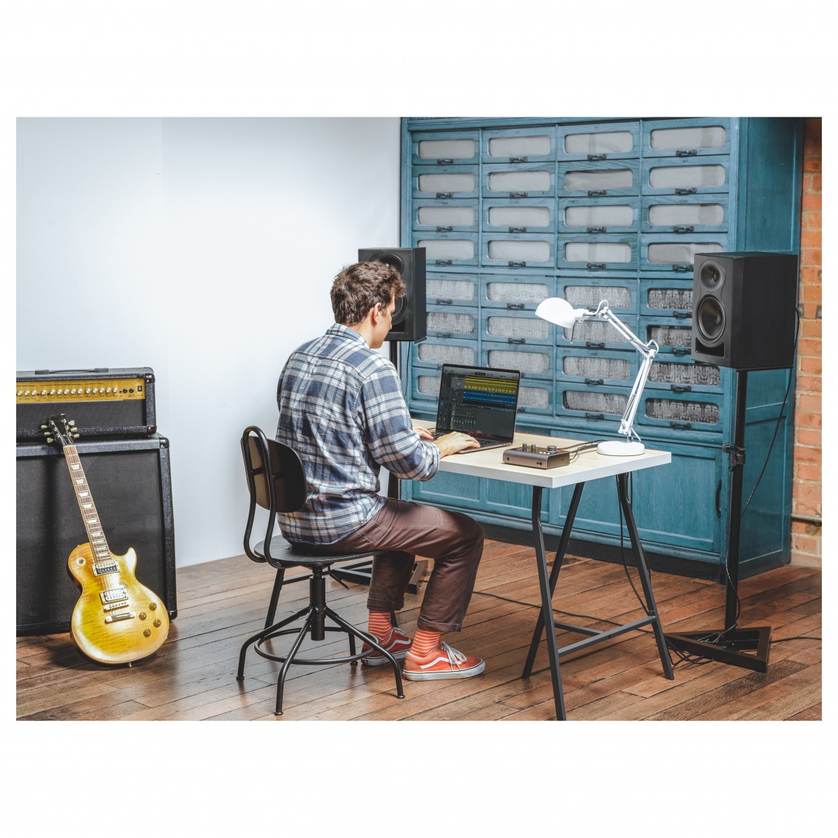 Incrivelmente versátil, o iD14 MKII vem completo com um ponto de conexão de jack duplo. Isso permite que você use quaisquer auscultadores com os quais se sinta mais confortável, sejam eles um ponto de conexão padrão ou mini jack. Graças a uma impedância de 6000 Ohms, a interface também é capaz de acionar os auscultadores que mais consomem energia em um nível satisfatório.