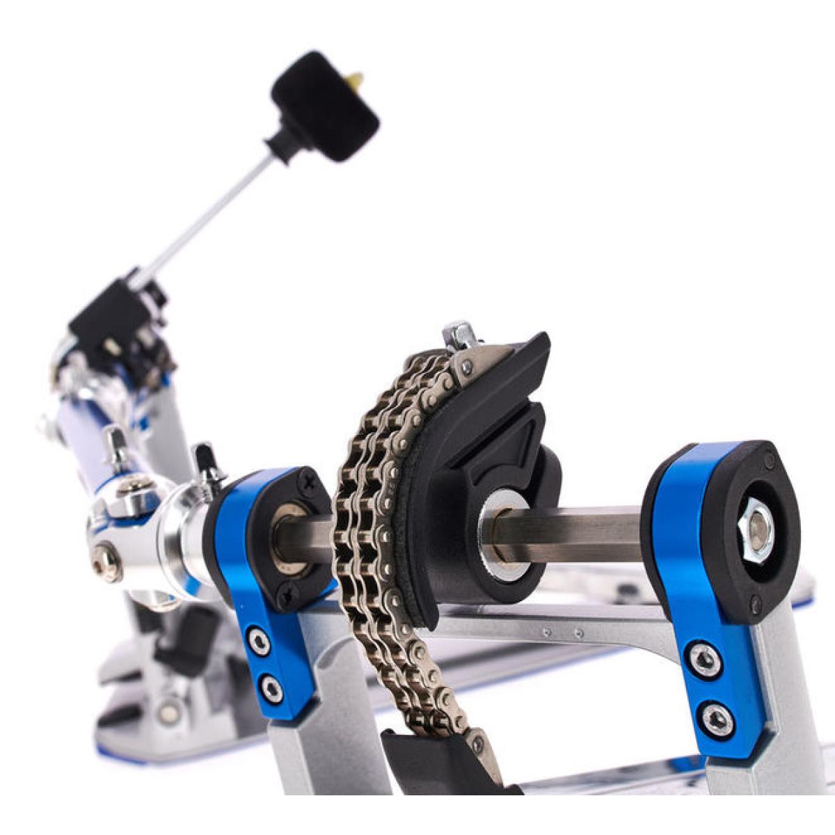 Um desempenho extremamente suave da placa de pé. O pedal duplo de acionamento corrente Yamaha FP9 possui uma dobradiça estabilizadora de perfil baixo, as partes azuis na parte inferior da platina. Estes são suavemente alisados e precisamente fabricados antes da montagem, o que permite um bom desempenho. A câmara na parte inferior da corrente pode ser posicionada em três posições, permitindo que você ajuste as ações dos pedais de acordo com o som e a sensação preferidos. Este pedal duplo possui batedores de peso ajustáveis, permitindo que você atinja seu som e sensação preferidos. Alumínio (3g) e latão (9g) pesos estão incluídos e podem ser anexados e removidos facilmente. O calcanhar de ambos os pés é equipado com pontas que impedem o pedal de escorregar durante o jogo, permitindo um desempenho estável.