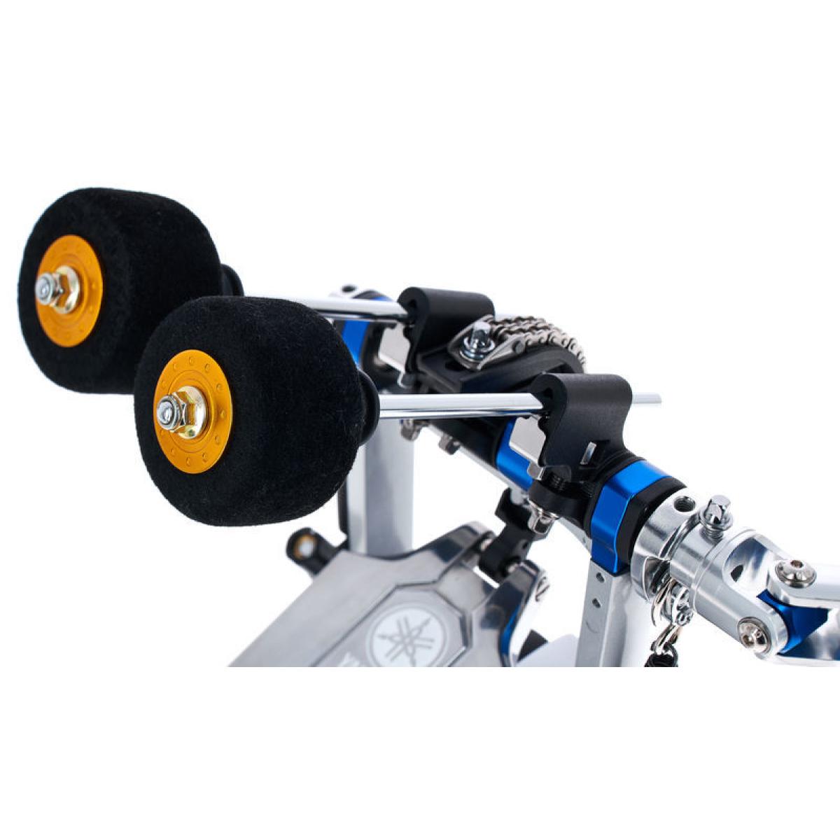 Um desempenho extremamente suave da placa de pé. O pedal duplo de acionamento corrente Yamaha FP9 possui uma dobradiça estabilizadora de perfil baixo, as partes azuis na parte inferior da platina. Estes são suavemente alisados e precisamente fabricados antes da montagem, o que permite um bom desempenho. A câmara na parte inferior da corrente pode ser posicionada em três posições, permitindo que você ajuste as ações dos pedais de acordo com o som e a sensação preferidos. Este pedal duplo possui batedores de peso ajustáveis, permitindo que você atinja seu som e sensação preferidos. Alumínio (3g) e latão (9g) pesos estão incluídos e podem ser anexados e removidos facilmente. O calcanhar de ambos os pés é equipado com pontas que impedem o pedal de escorregar durante o jogo, permitindo um desempenho estável.
