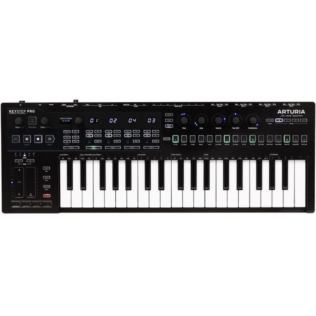 • Sequenciador de passos de 4 pistas com 16 teclas por passo, até 64 passos por sequência, até 16 notas de polifonia por passo;