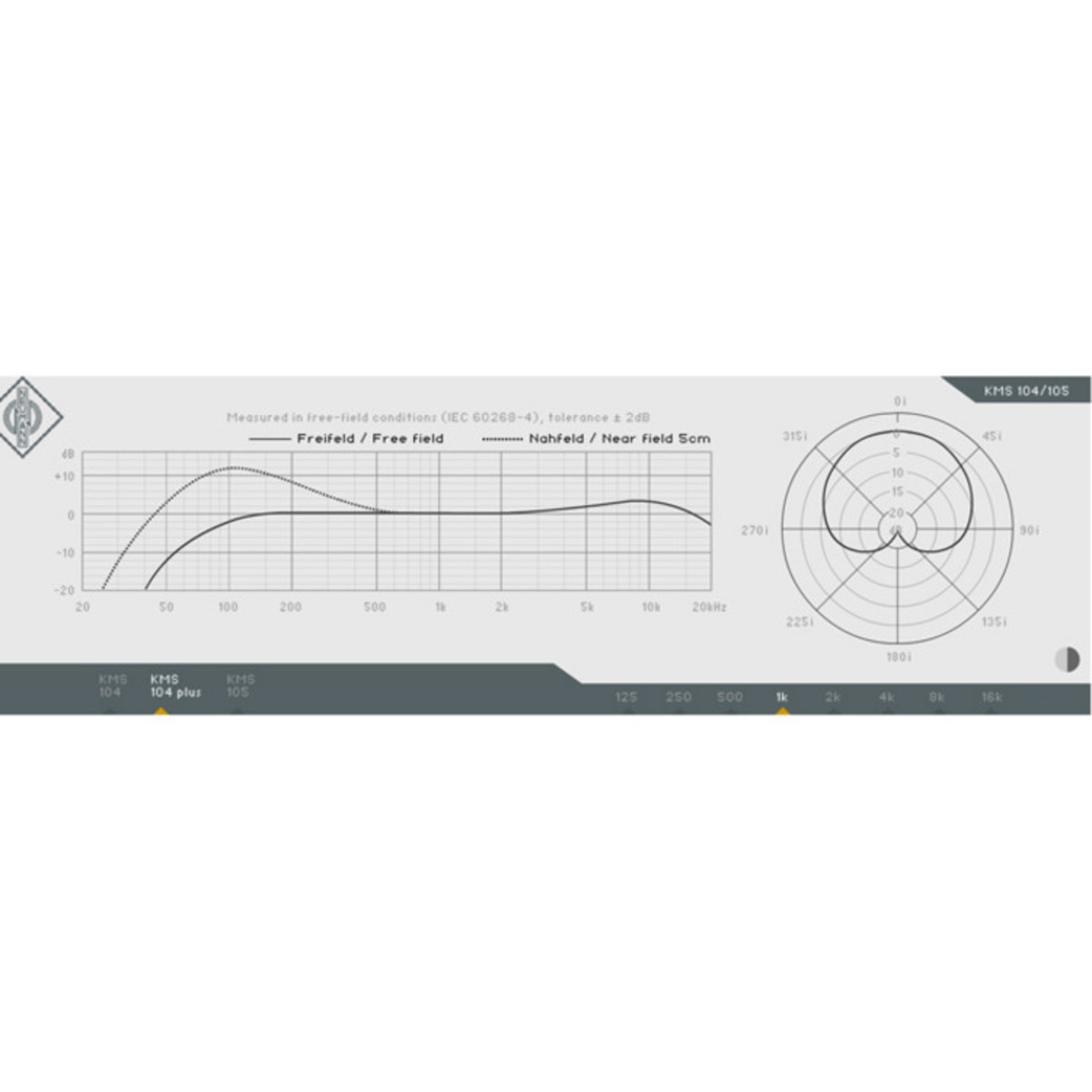 O Neumann KMS 104 PLUS MT apressenta alta resolução acústica e resposta de frequência suave, garantindo que o músico tem One Controlo ideal das suas performances em palco, sempre. Devido ao baixíssimo ruído nativo e isolamento de interferências, o microfone KMS 104 PLUS MT é ideal para uso com sistemas de monitorização auriculares (in-ear). O KMS 104 MT tem uma cápsula de microfone condensador com características direcionais cardióide, fornecendo a melhor supressão possível de sons originários por trás do microfone.