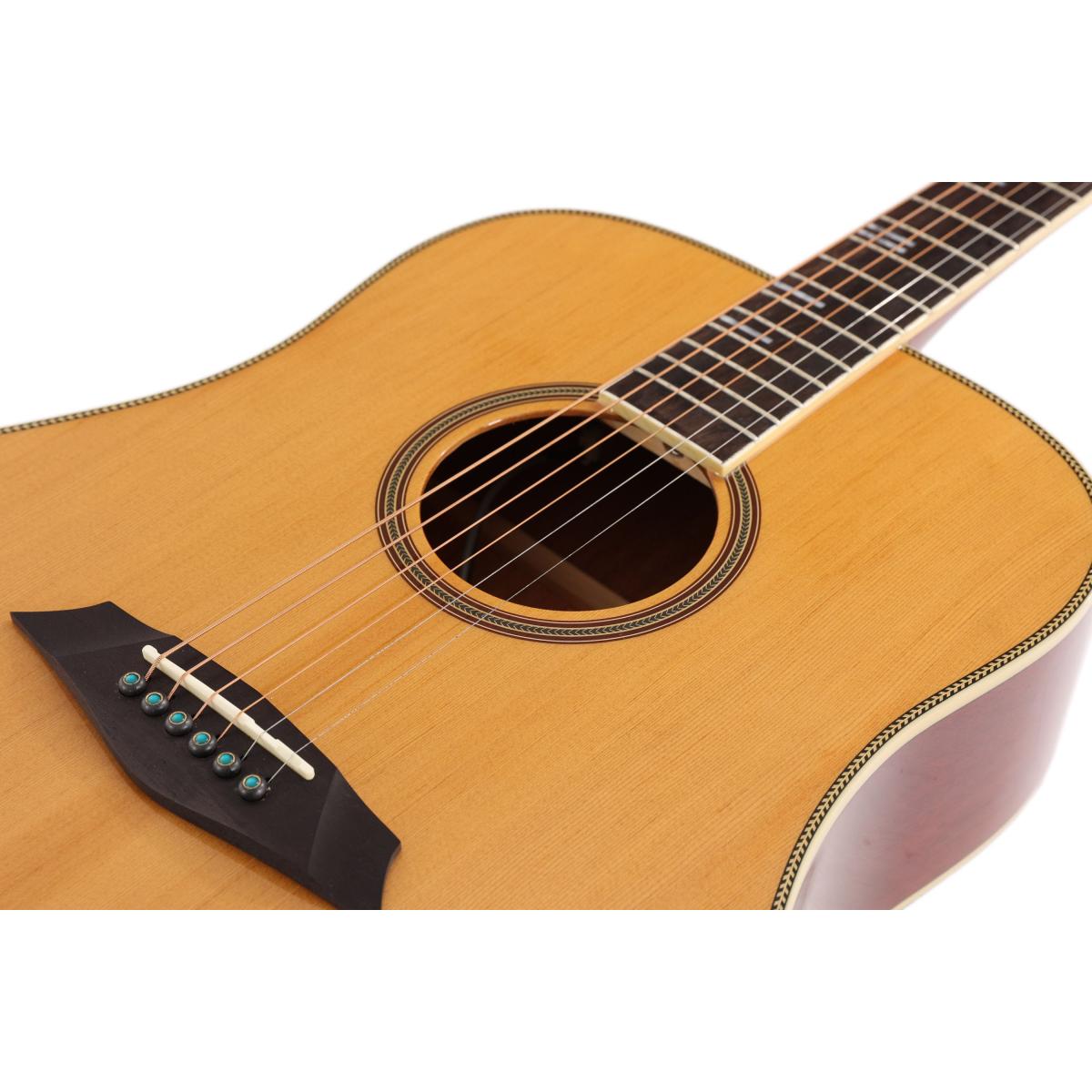 As guitarras Dreadnought possuem propriedades acústicas altas e entregam em uma faixa de frequência baixa a média completa. Eles são perfeitos em configurações de bandas maiores, mas também preenchem agradavelmente uma sala quando tocados sozinhos. Um grande e popular polivalente.